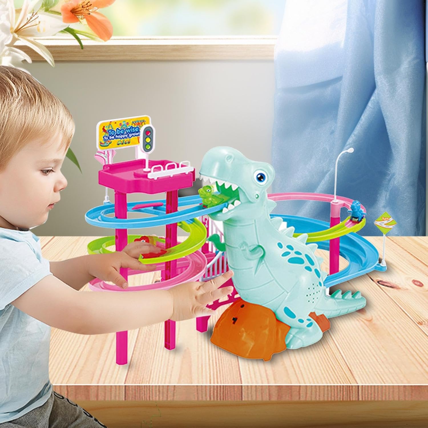 - * 【المادة】مدرج الديناصور هذا مصنوع من مادة البولي بروبلين، وهي آمنة وموثوقة في الاستخدام. جميع أجزاء اللعبة ناعمة.