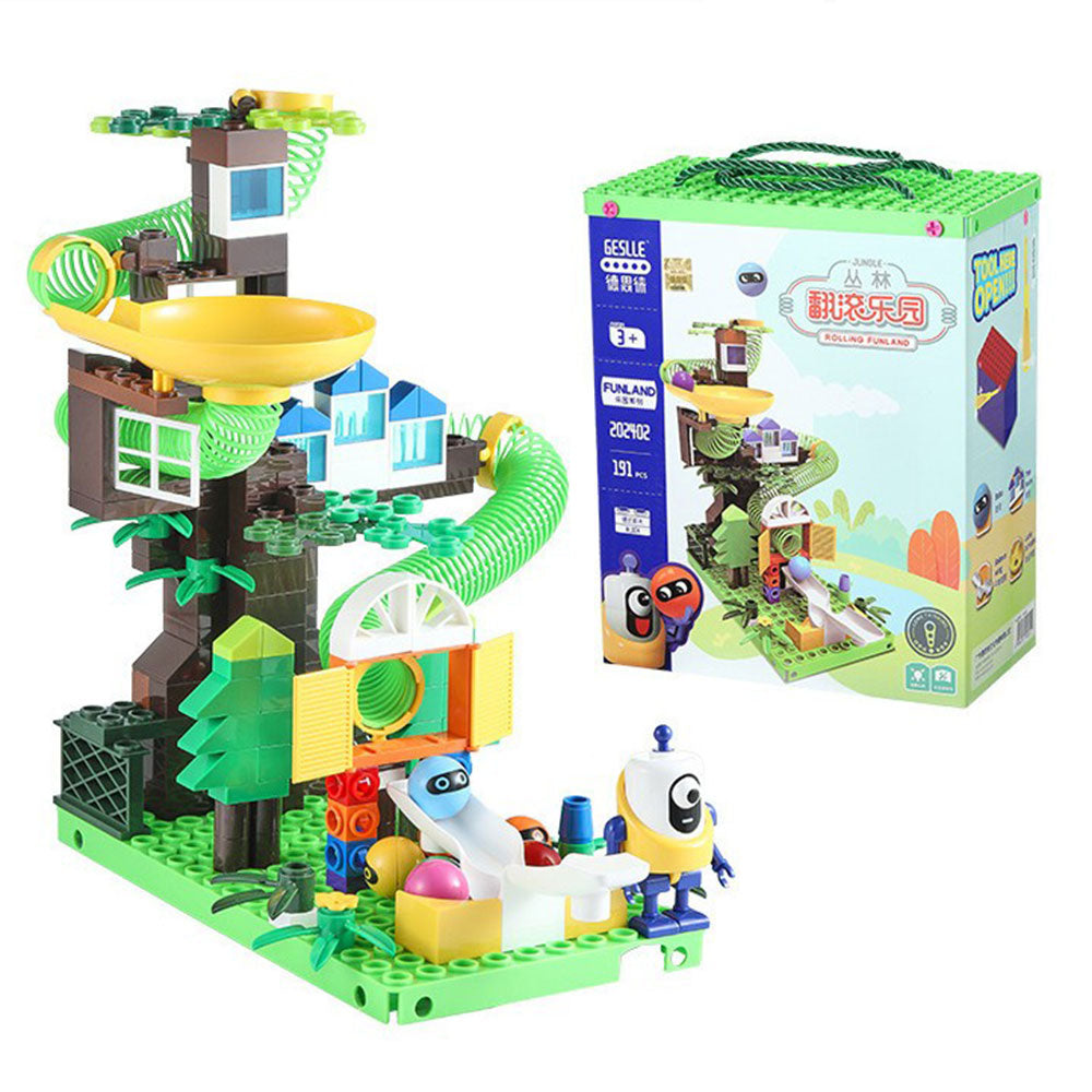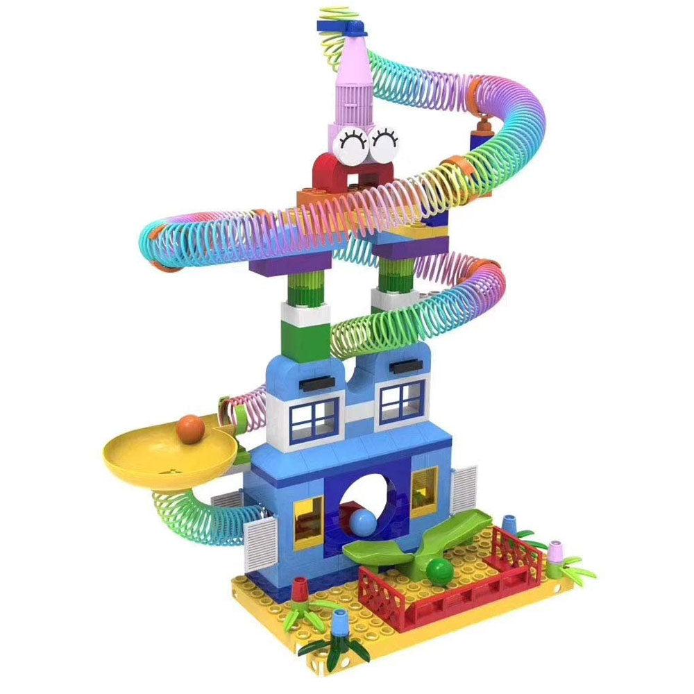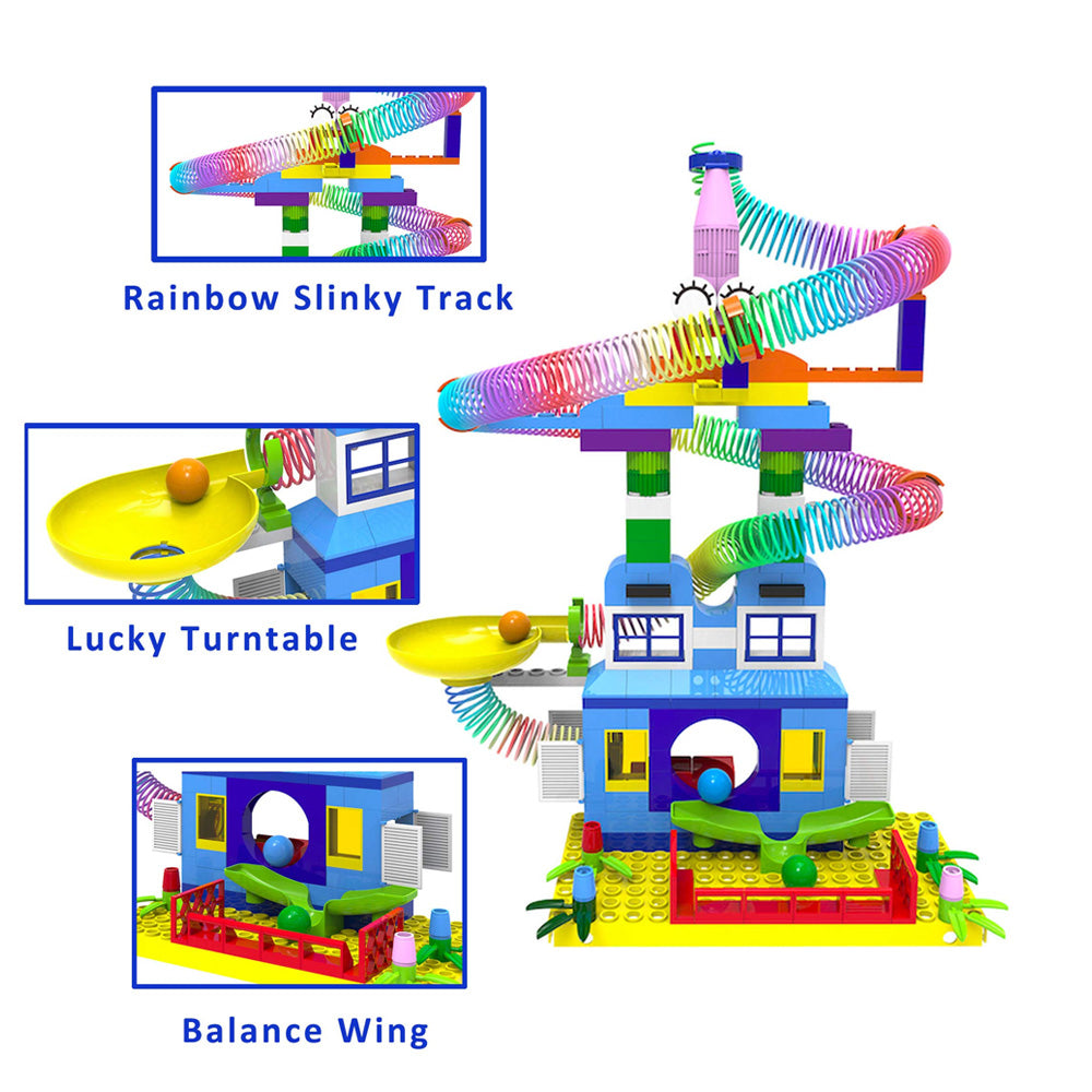 لعبة مكعبات تركيب للأطفال – لعبة مسار كرات تفاعلية مع زلاقات وأنابيب ملونة