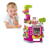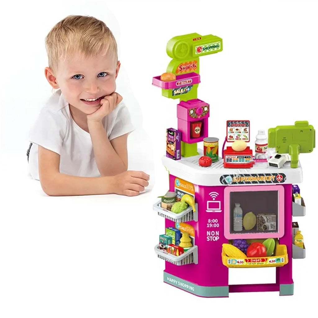 مجموعة ألعاب السوبر ماركت ستمنحك شعورًا حقيقيًا بالبائع أو المشتري! تتكون المجموعة من 67 عنصرًا، يمكنك من خلالها تجميع سوبر ماركت لعبة بسهولة، مزود برفوف جانبية وآلة قهوة. يحتوي السوبر ماركت على ماكينة تسجيل نقدي وماسح ضوئي، بإضاءة خلفية وأصوات مناسبة. ستتيح لك نماذج العملات المعدنية والأوراق النقدية الدفع عند الدفع. تُحاكي المقاييس الإلكترونية المستخدمة عادةً لوزن الخضراوات والفواكه. كما تتيح لك مجموعة المنتجات الغذائية والملحقات الأخرى وضع كل ما ترغب به في السلة، على سبيل المثال، الخضراوات والفواكه وزجاجة الحليب أو علبة الذرة.