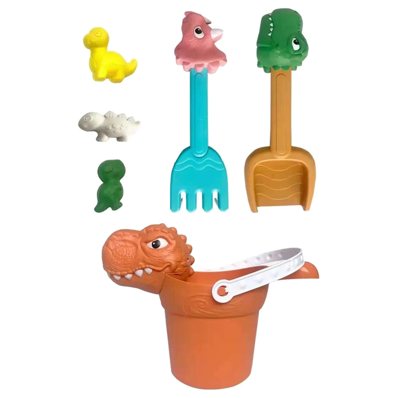 مجموعة ألعاب الرمل الملونة تتكون من 6 قطع مصممة على شكل ديناصورات مثالية للأطفال للعب داخل وخارج المنزل. مثل جميع ألعاب الشاطئ تعد سهلة الاستخدام لحمل الرمل وتشكيله باستخدام الملحقات المختلفة.