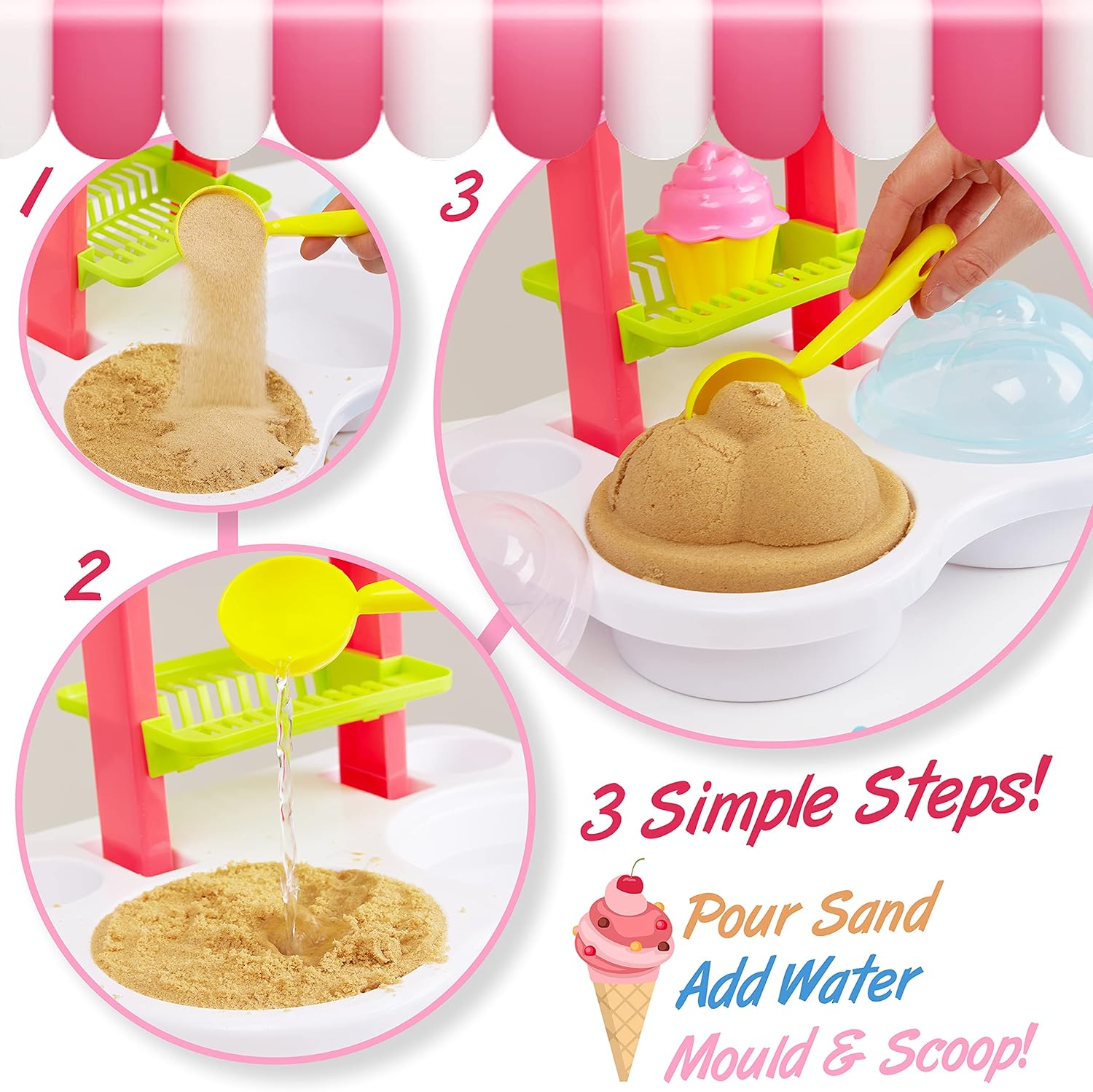 - تتضمن العبوة ألعاب الرمل مع طاولات اللعب المائية الخاصة بنا مع إجمالي 27 قطعة رائعة. تأتي المجموعات سهلة البناء مع 1 × طاولة رمل وماء، 1 × مظلة، 4 × قوالب آيس كريم بألوان مختلفة، 4 × قوالب مخروط آيس كريم، 4 × مغرفة آيس كريم، 1 × مغرفة آيس كريم، 2 × قوالب تزيين الكيك بألوان مختلفة، 4 × قوالب كيك جنية، 2 × مثبتات، 2 × عمود و2 × رفوف