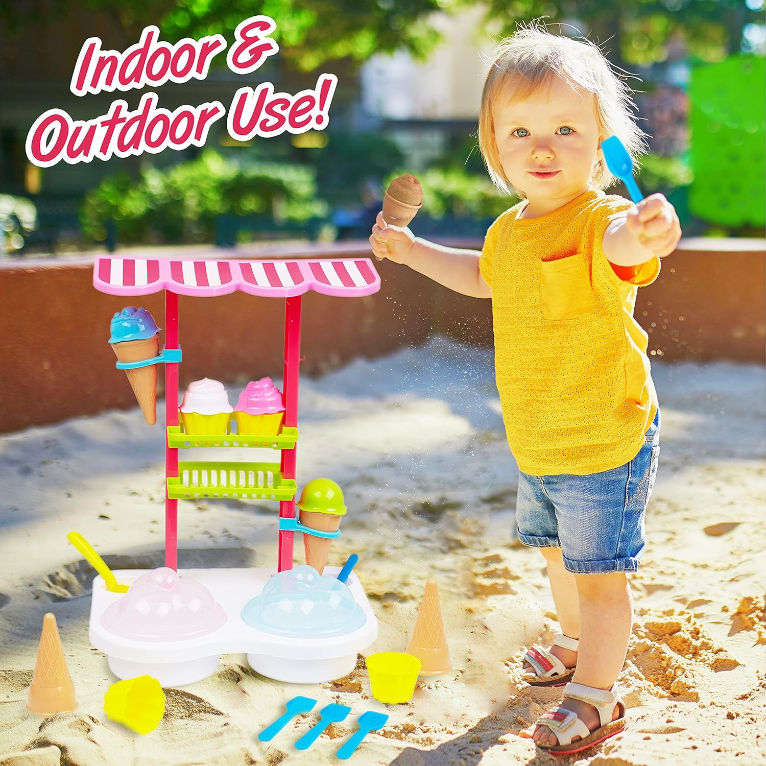 - اصنع الآيس كريم والكعك بنفسك - مع ألعابنا الخارجية المثيرة للأطفال، يمكن لأطفالك الاختيار بين نشاطين مختلفين. يمكنك تشكيل الآيس كريم اللذيذ باستخدام المغارف والأشكال الملونة المختلفة، أو يمكنهم تصميم الكب كيك الخاص بك باستخدام قوالب الكيك الجنية وزينة الكيك