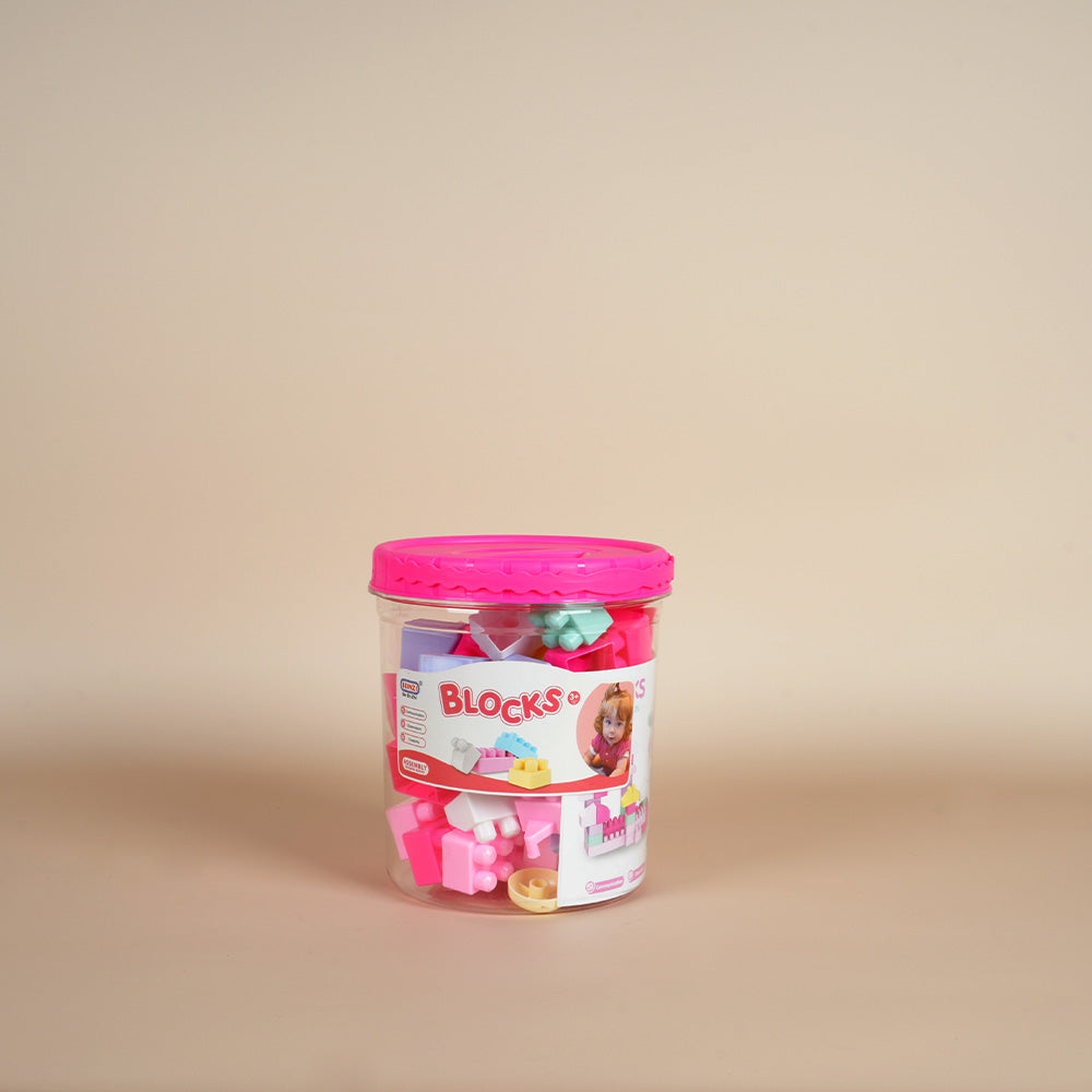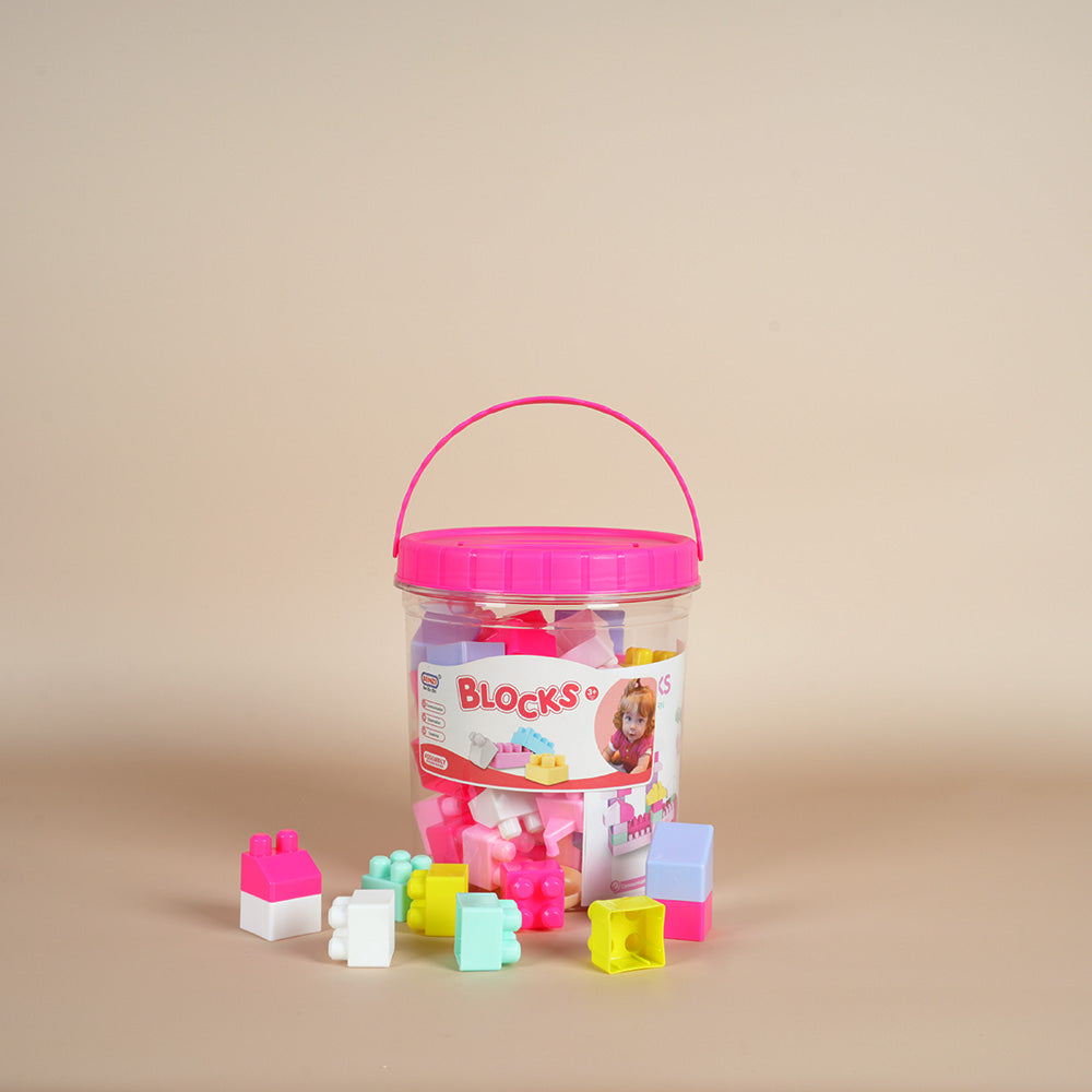 - مجموعة مكعبات بناء تعليمية كبيرة في دلو باللون الوردي، 55 قطعة.
