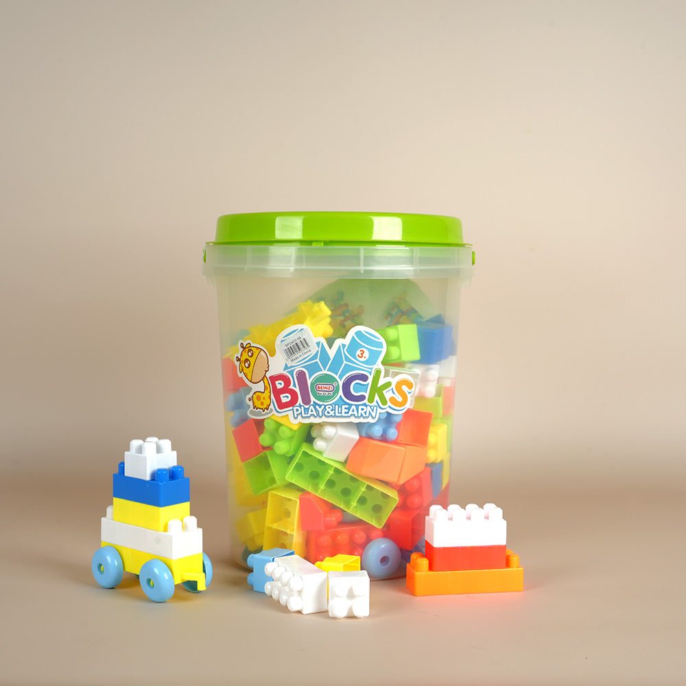 مجموعة مكعبات مكونة من 75 عنصرًا، مثالية للأطفال الذين يحبون البناء وتنمية إبداعهم. جميع المكعبات معبأة في دلو عملي وشفاف بمقبض نقل مريح. الدلو مغلق، مما يسهل تخزين وحمل المكعبات والحفاظ على النظام بعد اللعب.