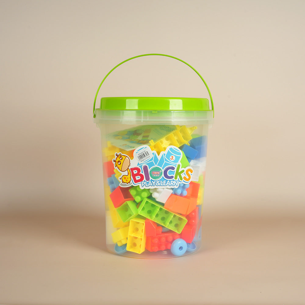 مجموعة مكعبات بناء تعليمية كبيرة في دلو باللون الوردي، 85 قطعة.