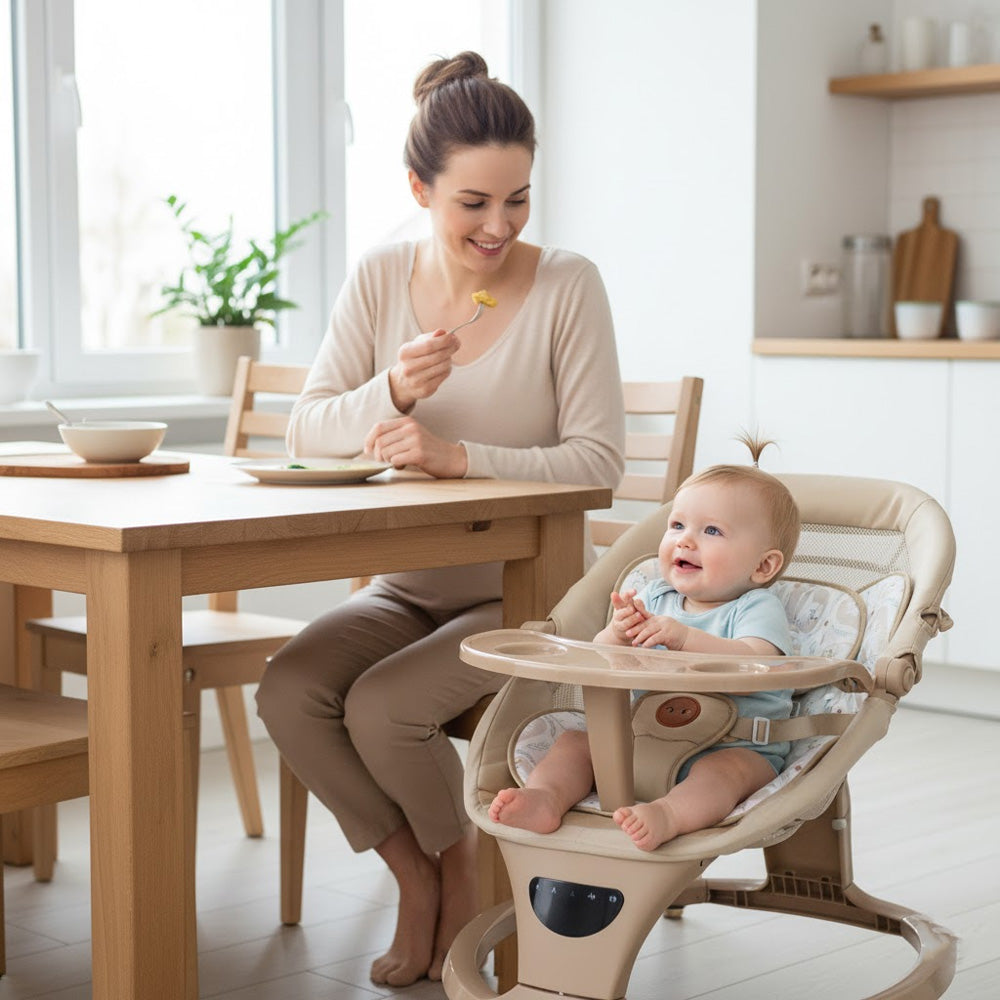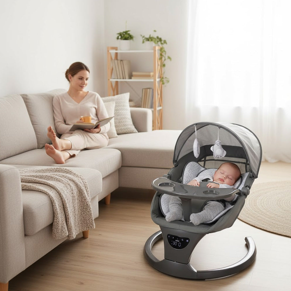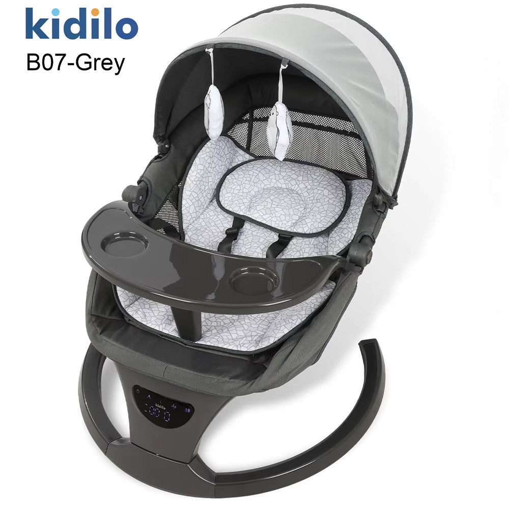 امنحي طفلكِ راحة لا مثيل لها مع كرسي الهزاز الكهربائي Kidilo PD-B07A بلونه الرمادي الأنيق. يتميز بتصميم مريح وآمن مزود بحزام تثبيت ناعم، وحركة هزّ خفيفة تُهدّئ الطفل وتساعده على النوم. يعمل بالبطاريات أو بالكهرباء، ويأتي مع ألعاب معلقة لتحفيز حواس الطفل.