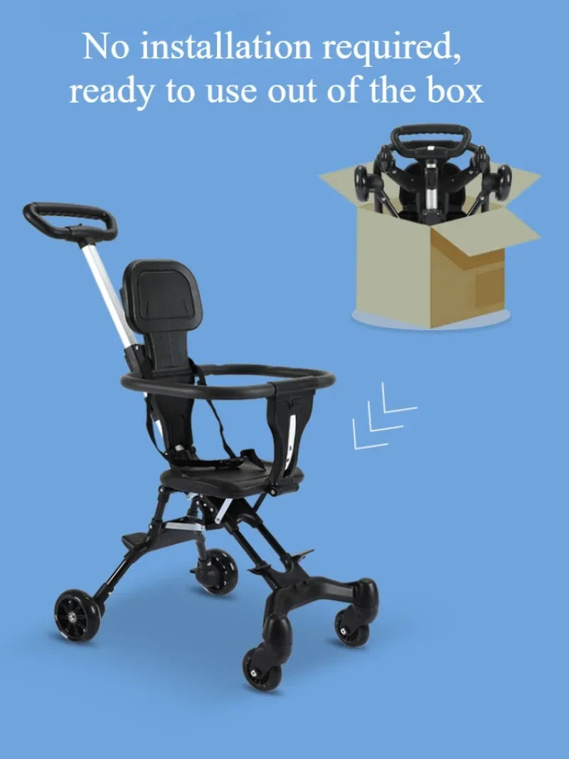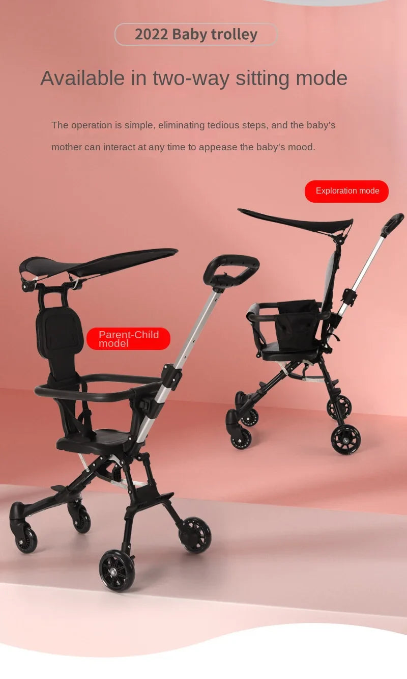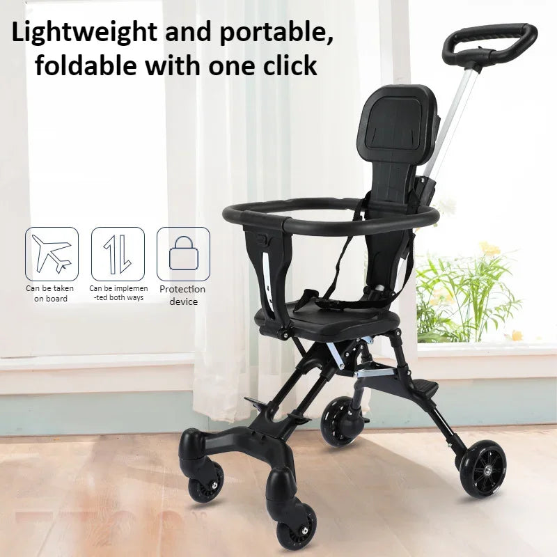عربة أطفال خفيفة الوزن بتصميم مرتفع، قابلة للطي بنقرة واحدة في اتجاهين مع درابزين فرامل مزدوج لحديثي الولادة