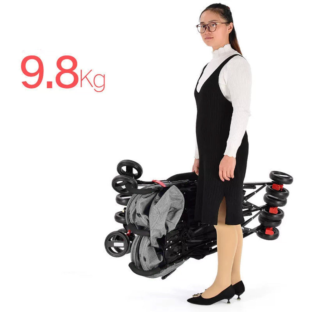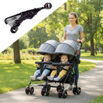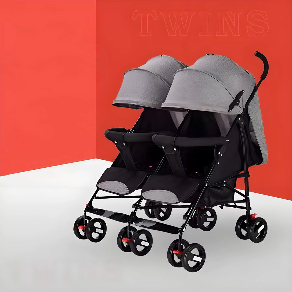عربة أطفال توأم - تصميم قابل للطي، مريح وآمن، رمادي