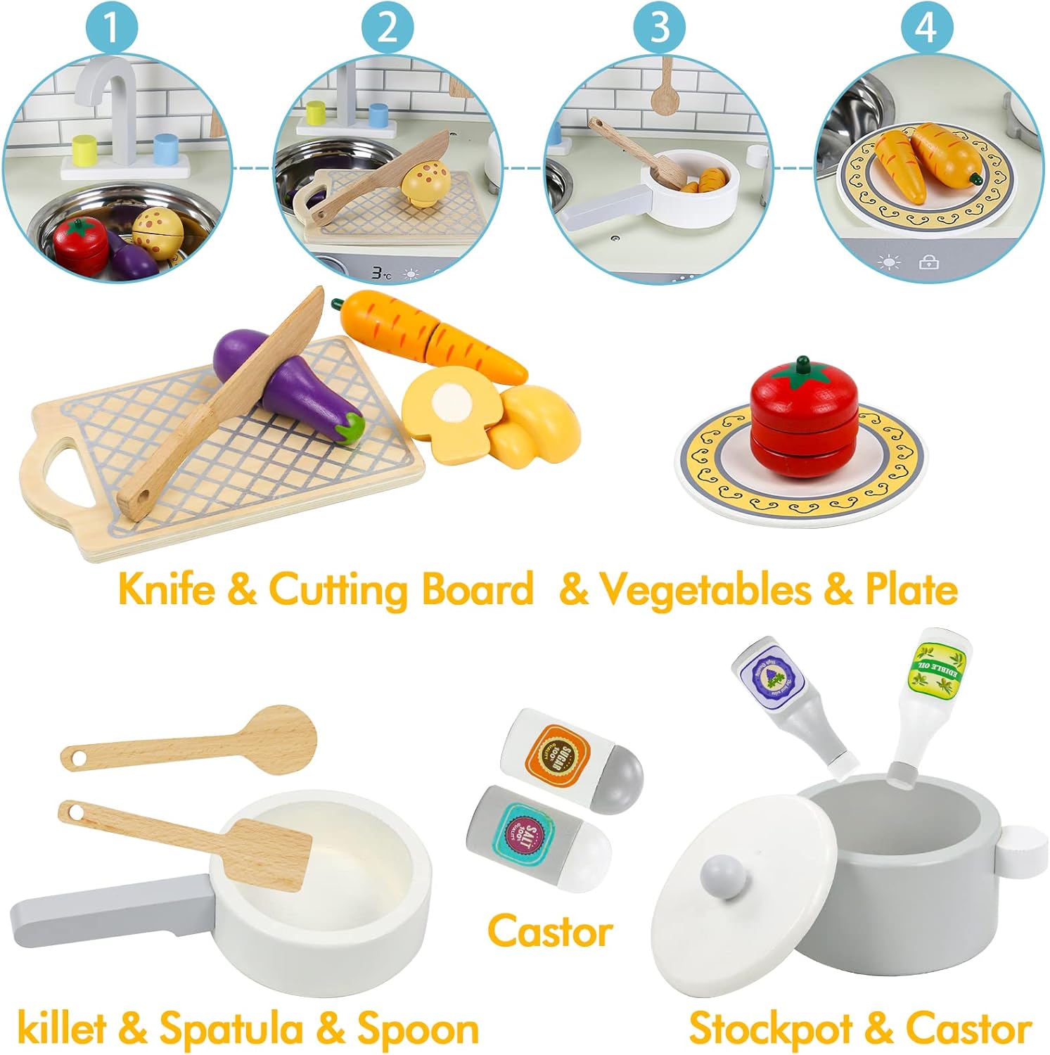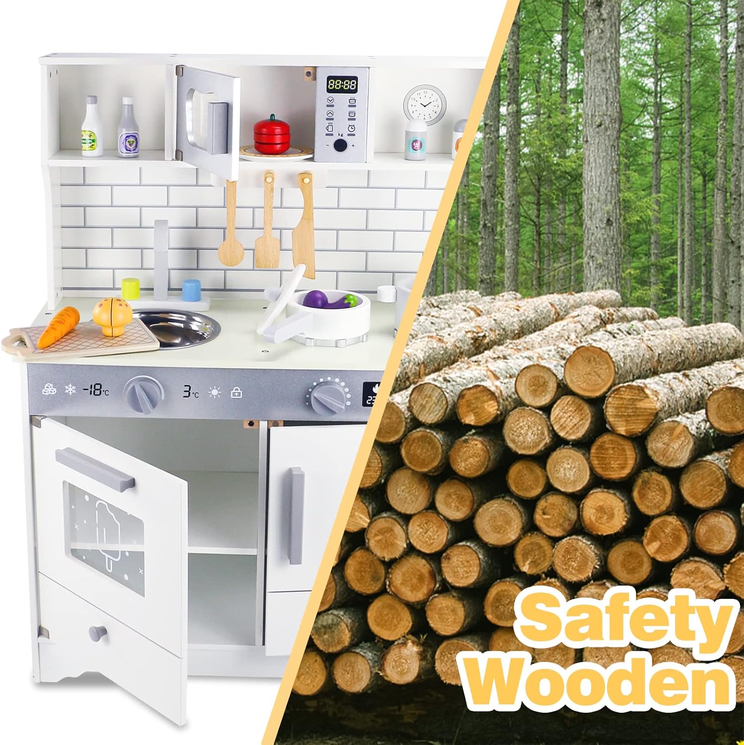 مجموعة مطبخ لعب خشبي للأطفال – متعة آمنة وتعليمية!
