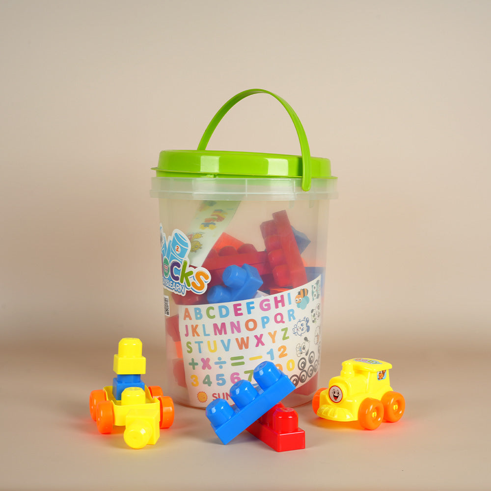 مجموعة مكعبات مكونة من 56عنصرًا، مثالية للأطفال الذين يحبون البناء وتنمية إبداعهم. جميع المكعبات معبأة في دلو عملي وشفاف بمقبض نقل مريح. الدلو مغلق، مما يسهل تخزين وحمل المكعبات والحفاظ على النظام بعد اللعب.