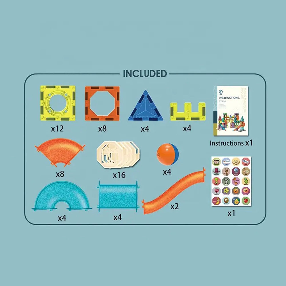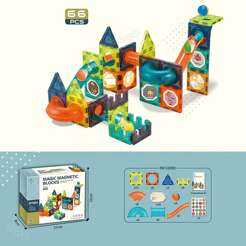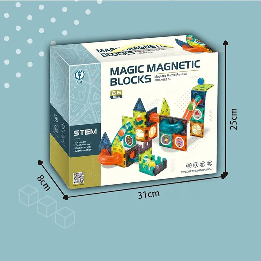 مكعبات مغناطيسية سحرية، 66/96 قطعة من البلاط المغناطيسي البلاستيكي ومسار الرخام