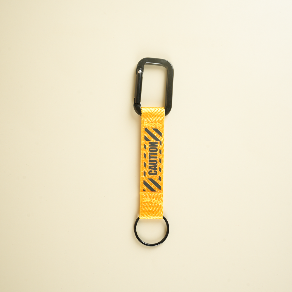 أظهر جانبك الجريء والمميز مع ميدالية المفاتيح CAUTION، المستوحاة من لافتات التحذير الصناعية والعسكرية.