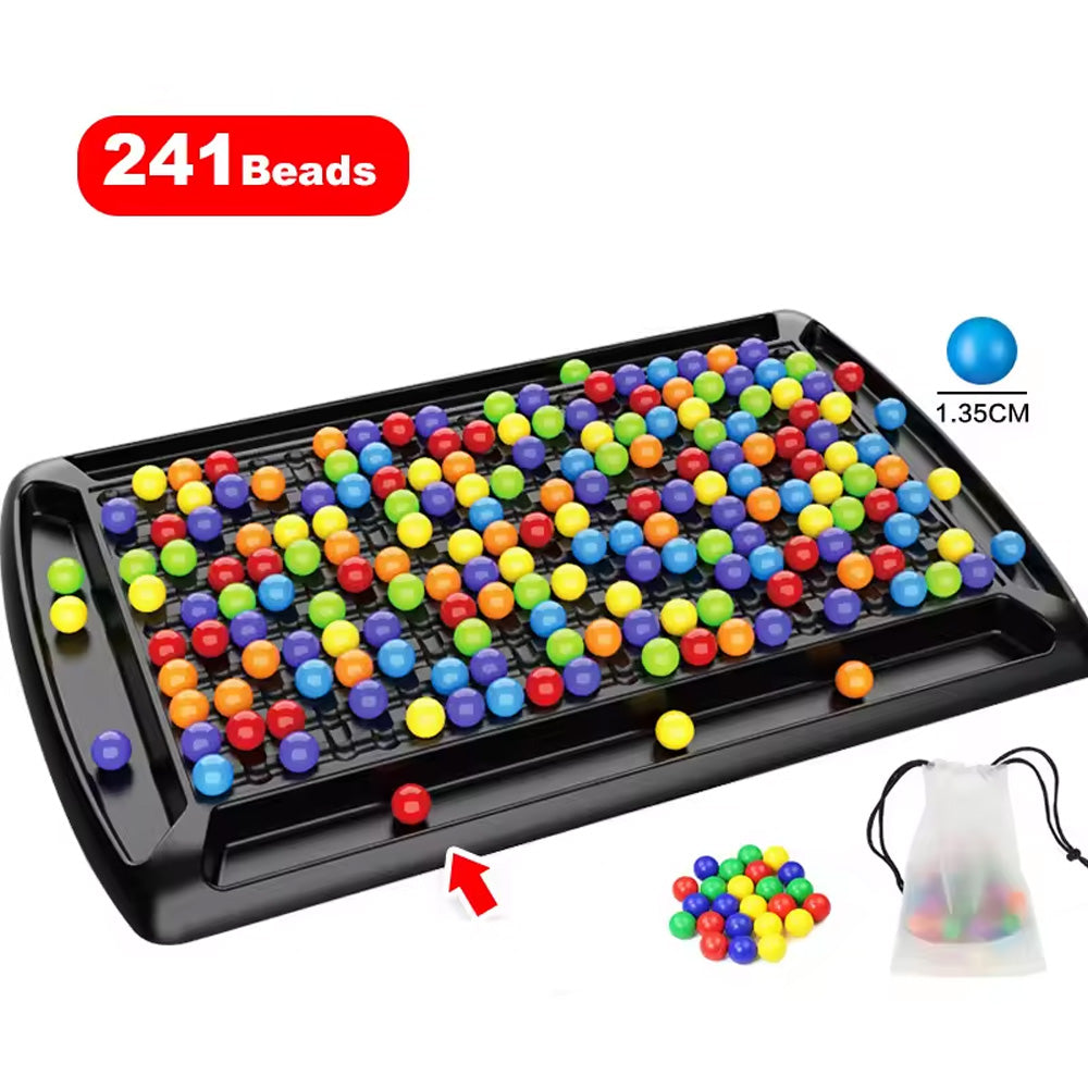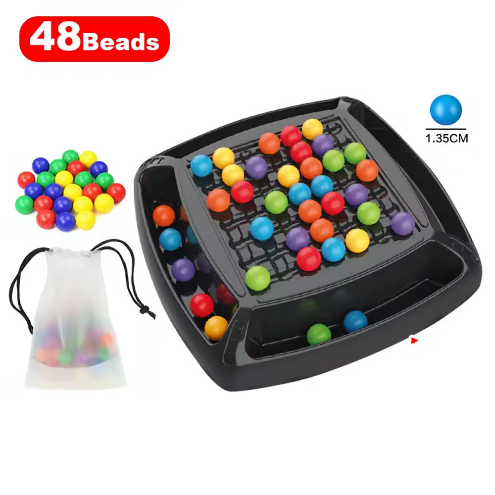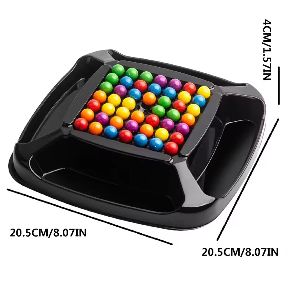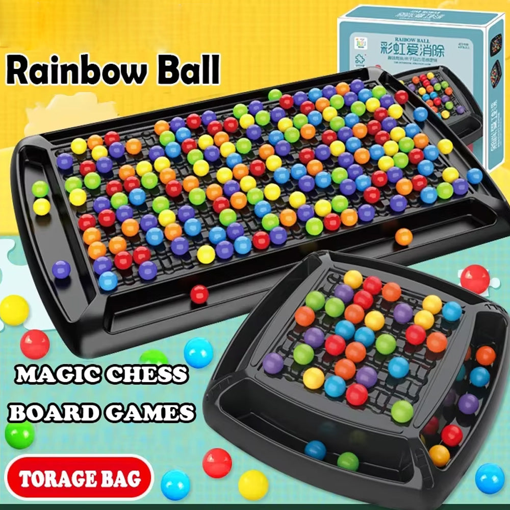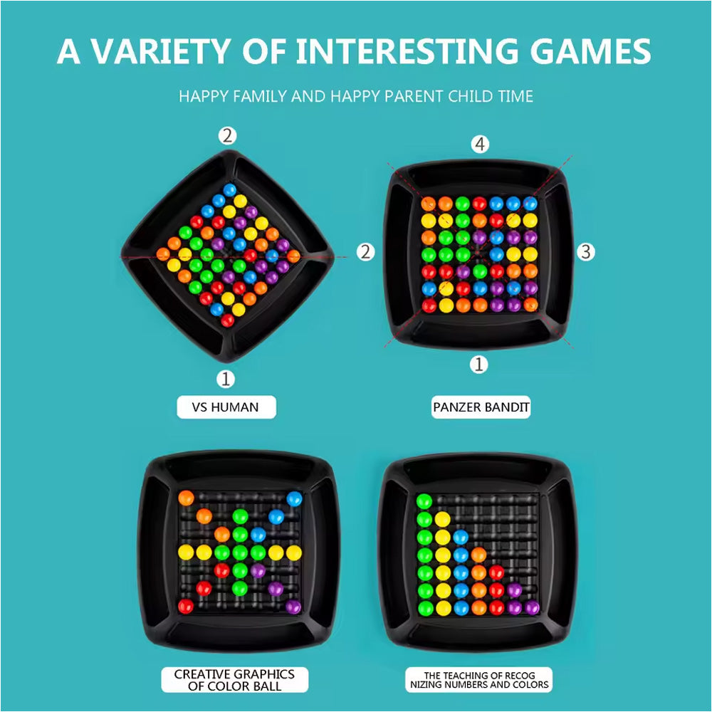 لعبة الشطرنج السحرية بكرات قوس قزح: تقضي لعبة قوس قزح هذه على الكرات من نفس اللون عن طريق تحريك صف من الكرات الملونة. فكر بسرعة في كيفية الحصول على المزيد من الكرات. العدد الموصى به: مناسب للعب من 2 إلى 4 أشخاص. يمكن للاعبين تخصيص قواعد اللعبة أو اتباع القواعد الموجودة في التعليمات. كيف تحصل على المزيد من الكرات؟ أو كيف تحصل على درجة أعلى. لعبة لوحة قوس قزح: يمكن لهذه اللعبة اللوحية أن تنمي قدرة الأطفال على التفكير المنطقي، وتعزز خيالهم، وتحسن التعرف على الألوان وتصنيفها. الأنشطة العائلية: مناسبة جدًا لألعاب الوالدين والطفل. يمكن للوالدين مرافقة أطفالهم للعب معًا ومشاهدة نموهم في عملية الألعاب. تجنب ابتلاع حبات قوس قزح: يجب على الأطفال استخدامها تحت إشراف البالغين. المادة: بلاستيك ABS العمر الموصى به: الأطفال فوق 3 سنوات التعليمات 1. يمكن للخرز أن يتحرك عموديًا أو أفقيًا فقط لتعزيز نمو الخرز. ابحث عن نفس ألوان الخرز المجاور. على سبيل المثال، يجب أن تتوقف العوائق أو الحواف أمام الخرز على الفور. 2. تحرك للعثور على الخرز من نفس اللون وأعطه لنفسك. اسحب خرزتين لتحصل على 5 نقاط، 3 خرزات لتحصل على 10 نقاط، 4 خرزات لتحصل على 15 نقطة، وهكذا. بعد إزالة الخرزات، يمكنك إزالتها. احصل على أكثر مما تربح. نصيحة: يحتوي هذا المربع على قواعد اللعبة للرجوع إليها. يمكنك أيضًا تخصيص القواعد لفتح ألعاب أخرى.