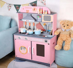 مجموعة ألعاب المطبخ الخشبية للأطفال – باللون الوردي مع صوت وضوء!