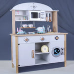 - Realistic role play: Our children's kitchen is equipped with 2 stoves, 1 microwave, 1 tap, 1 sink and 1 washing machine for imaginative play. Children can pretend to use the microwave, cook meals, wash fruit or wash clothes for role play fun.