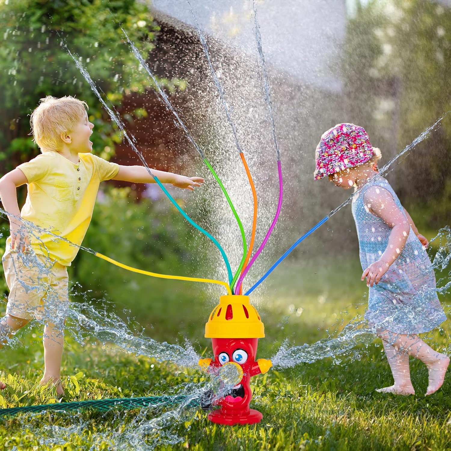 - سهلة الاستخدام: سوف تكون مكافأة الأطفال الصغار بمتعة مبهجة أمرًا سهلاً. ما عليك سوى توصيل خرطوم المياه بالرشاش الموجود في الأسفل، وتشغيل الصنبور، وشاهد متعة الرش تبدأ.