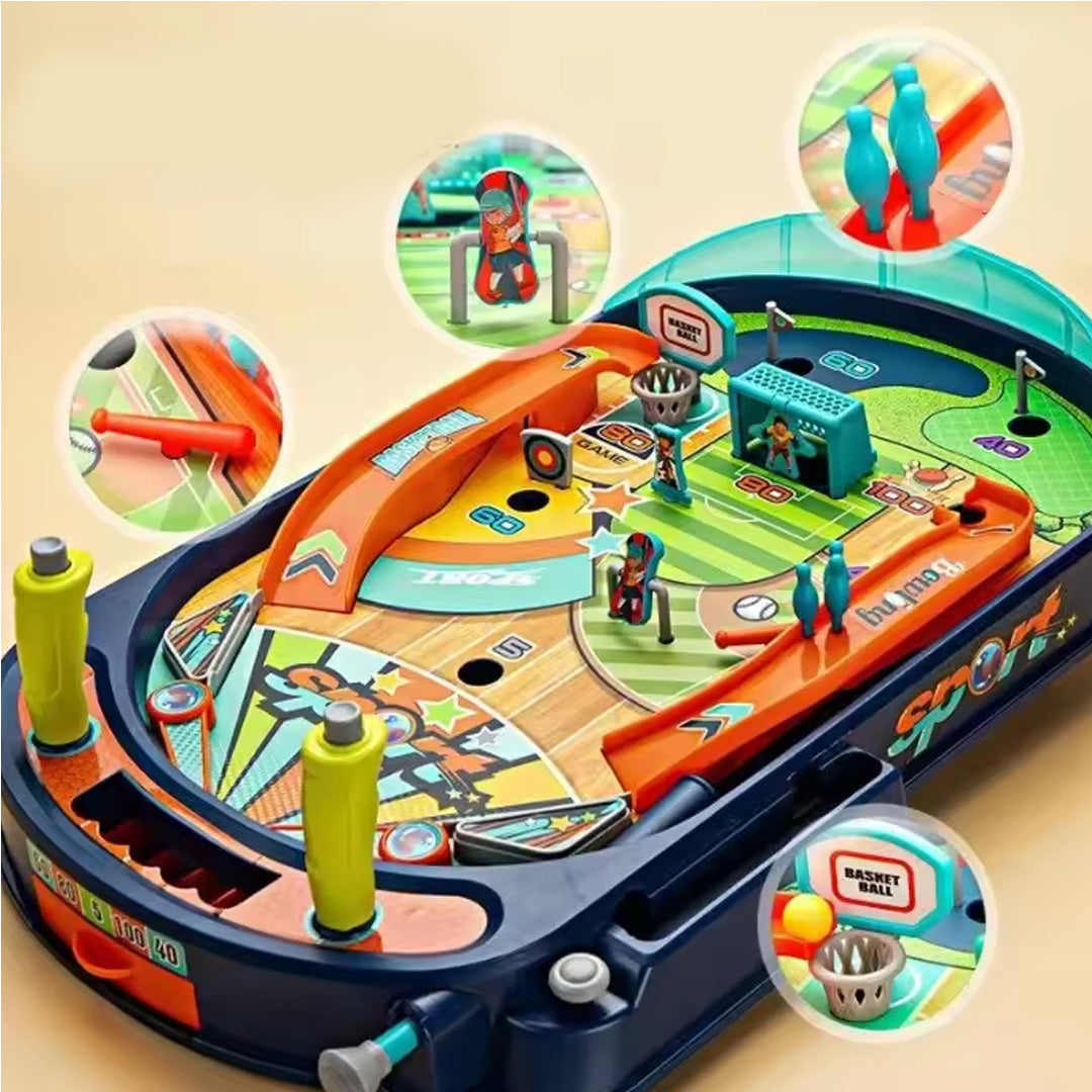 أضف لمسة من المرح والإبداع لوقت اللعب مع لعبة الطاولة الرياضية المتعددة! تجمع هذه اللعبة بين عدة رياضات مثل كرة السلة، كرة القدم، البولينج والغولف في تصميم واحد مدهش. مصنوعة من مواد آمنة للأطفال، وتتميز بألوان زاهية تجذب الانتباه وتشجع على التفاعل.