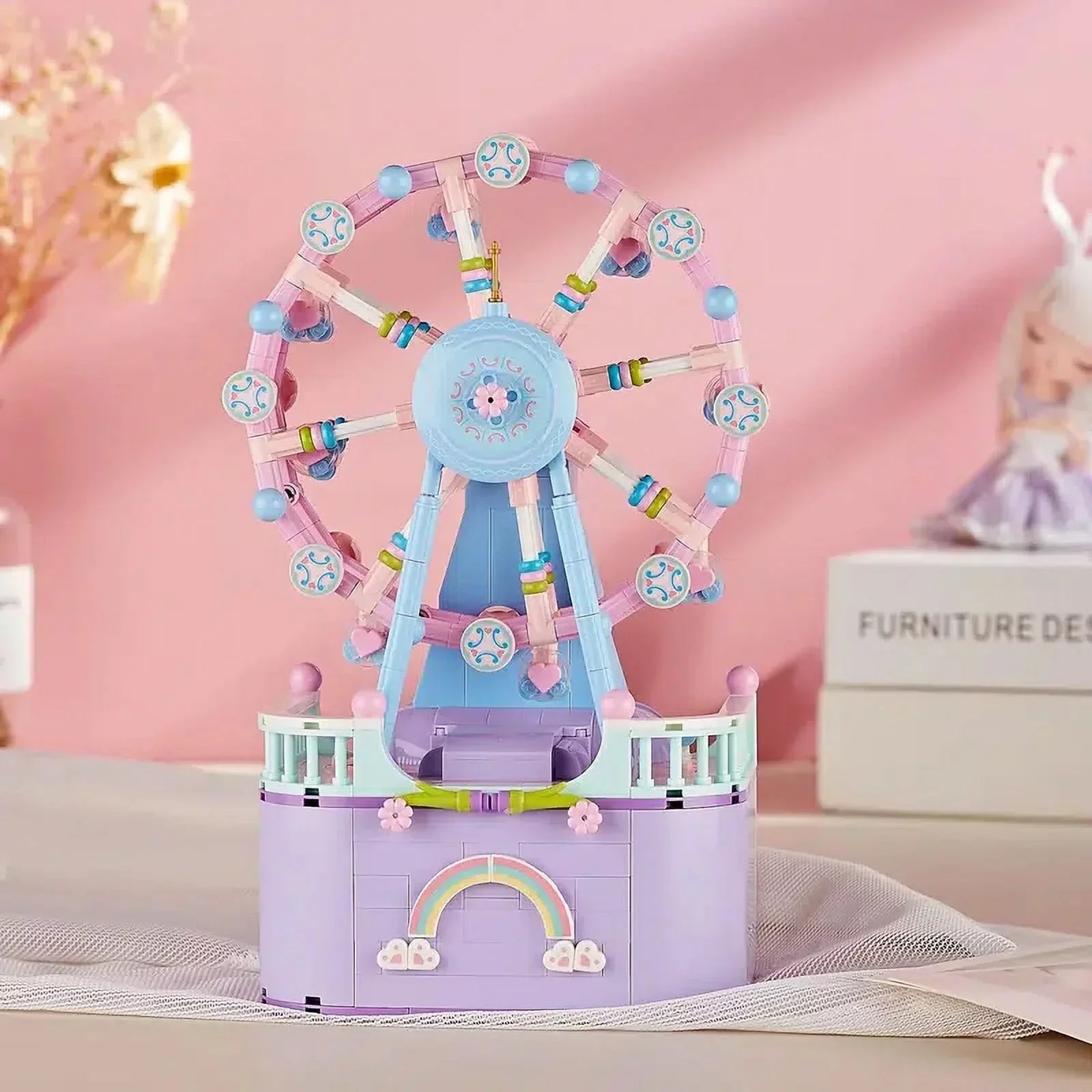 مجموعة بناء صندوق موسيقى عجلة فيريس XKS مكونة من 725 قطعة للأطفال من سن 8 سنوات فما فوق والبالغين. أفكار مكعبات بناء قابلة للتجميع، هدية عيد الميلاد والعطلات. مكعبات صغيرة جدًا (غير متوافقة مع مجموعة ليغو)