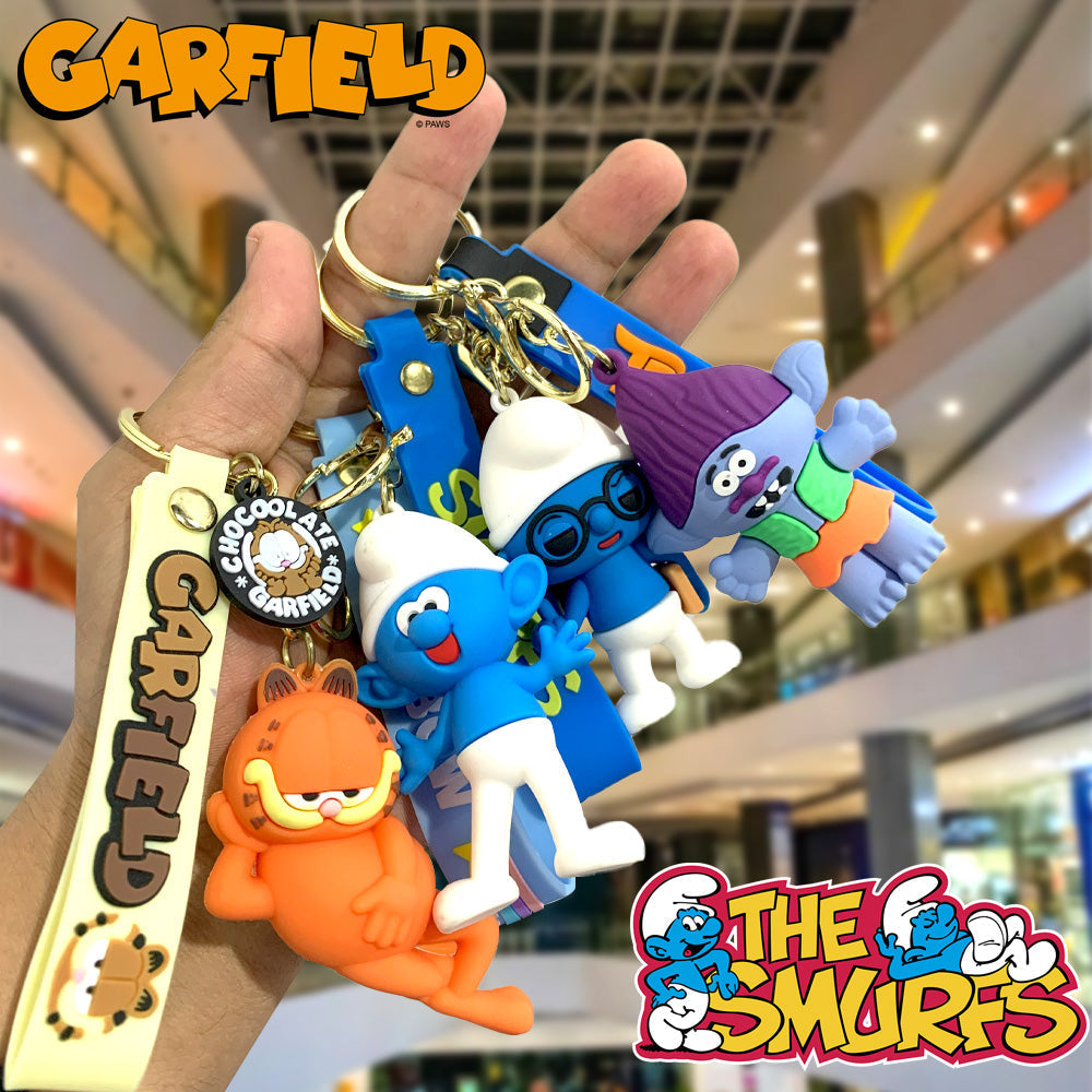 سلسلة مفاتيح على شكل شخصية السنافر وغارفيلد والترولز