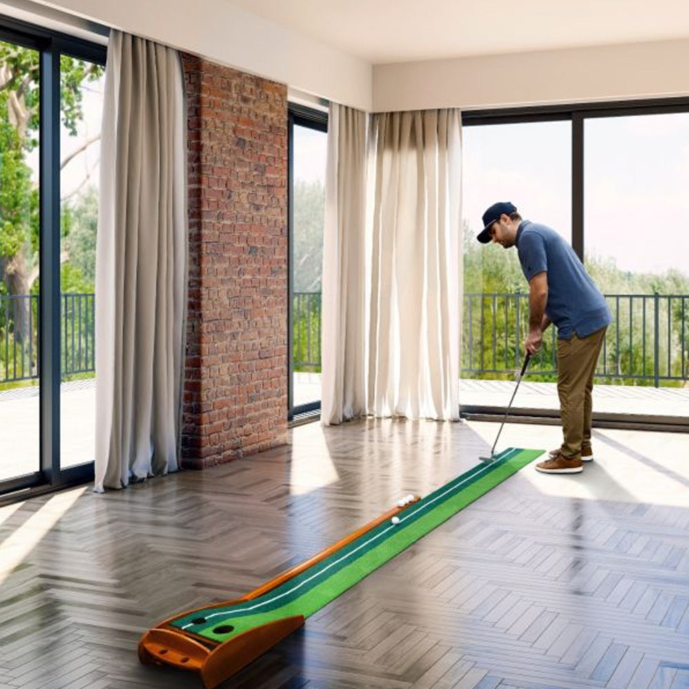 من زوايا المكتب إلى غرف المعيشة، تُحوّل هذه السجادة أي مساحة إلى مساحة خضراء صغيرة خاصة بك. صُممت لتُضفي على ملعب الجولف لمسةً من الدفء والراحة، دون الحاجة إلى كرات الجولف الضائعة بين الشجيرات. بفضل إطارها الأنيق من خشب الصنوبر وعشبها الطبيعي، فهي أكثر من مجرد أداة تدريب، بل هي إضافة ممتعة لوقت فراغك. ما عليك سوى حمل مضرب الجولف ودع خاصية إعادة الكرة تلقائيًا تُكمل المهمة.