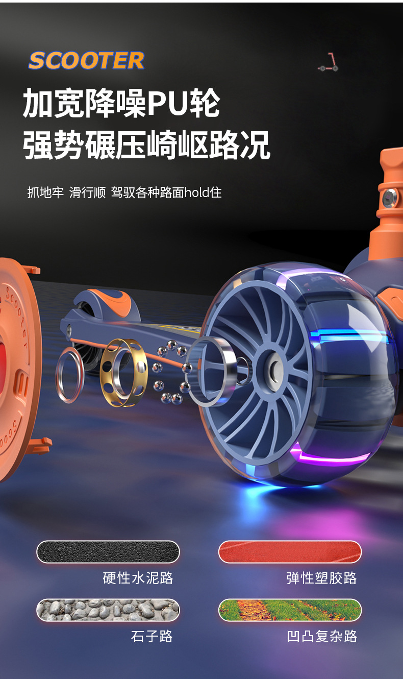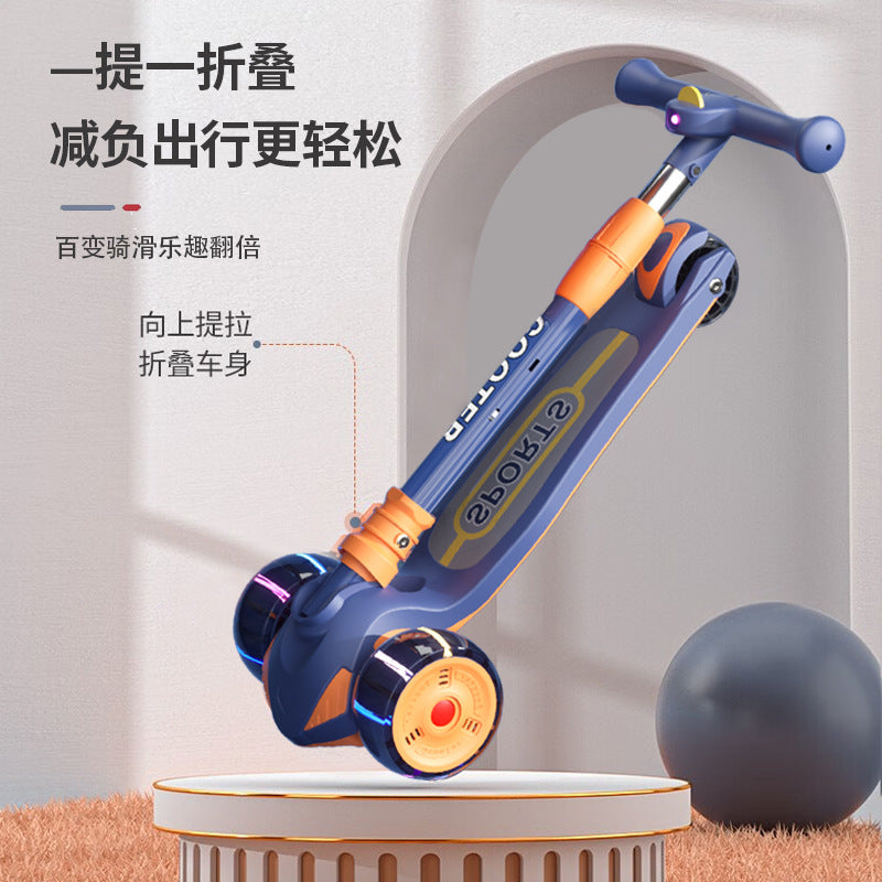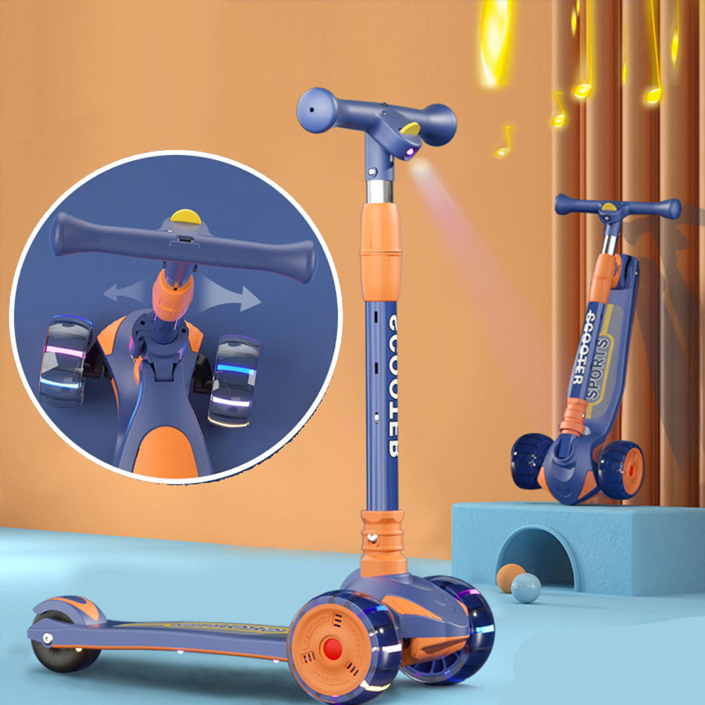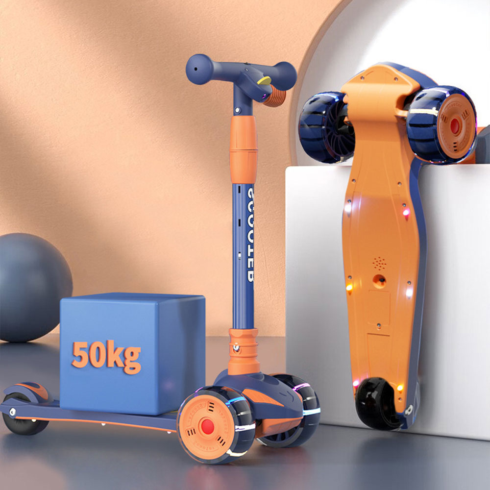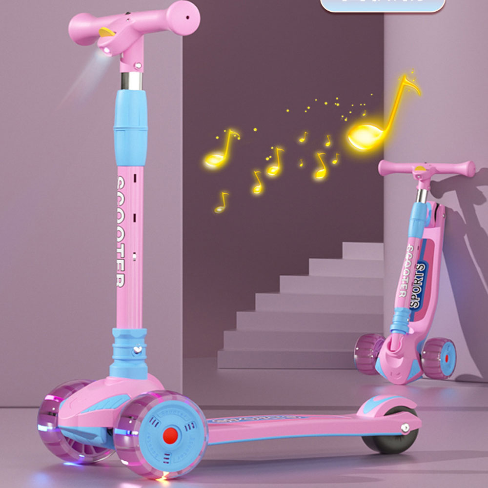 سكوتر كهربائي للأطفال، عجلات مساعدة فلاشية ثابتة السرعة، مقعد قابل للفصل، وظيفة بلوتوث، قابل للطي لمدة 3 ثوانٍ، سهل الحمل، مناسب للأطفال من سن 2 إلى 12 عامًا