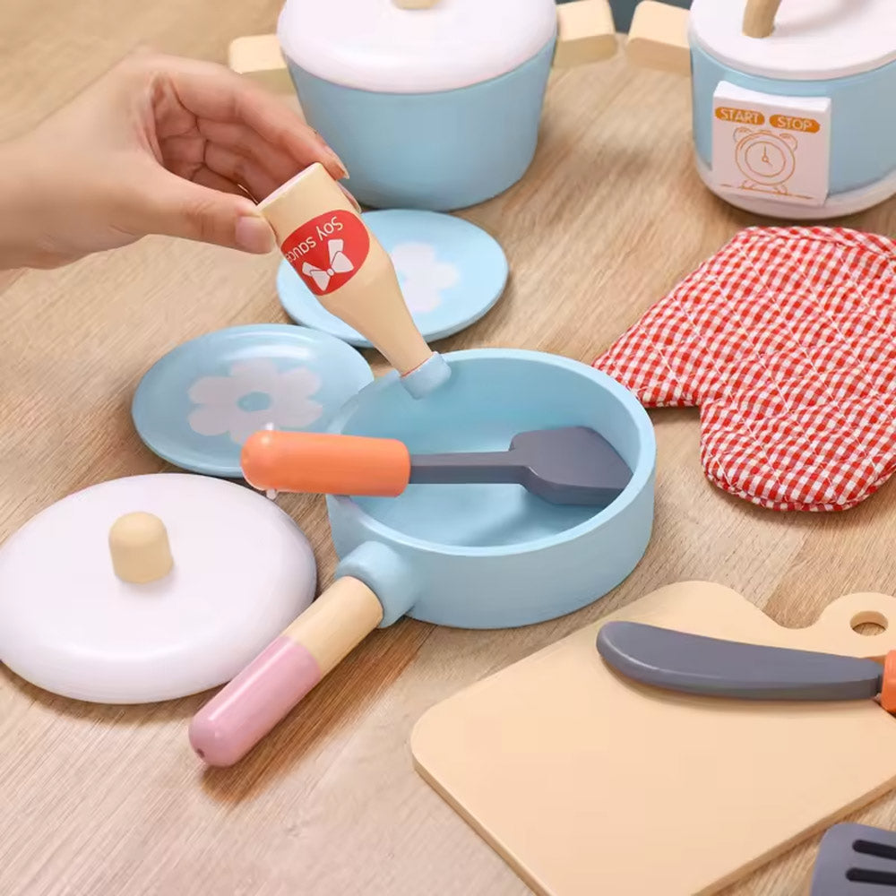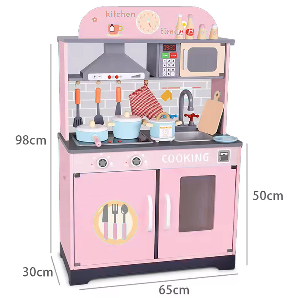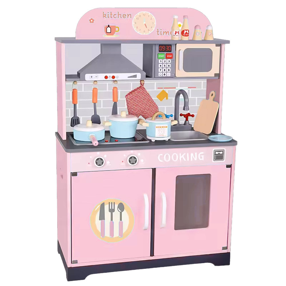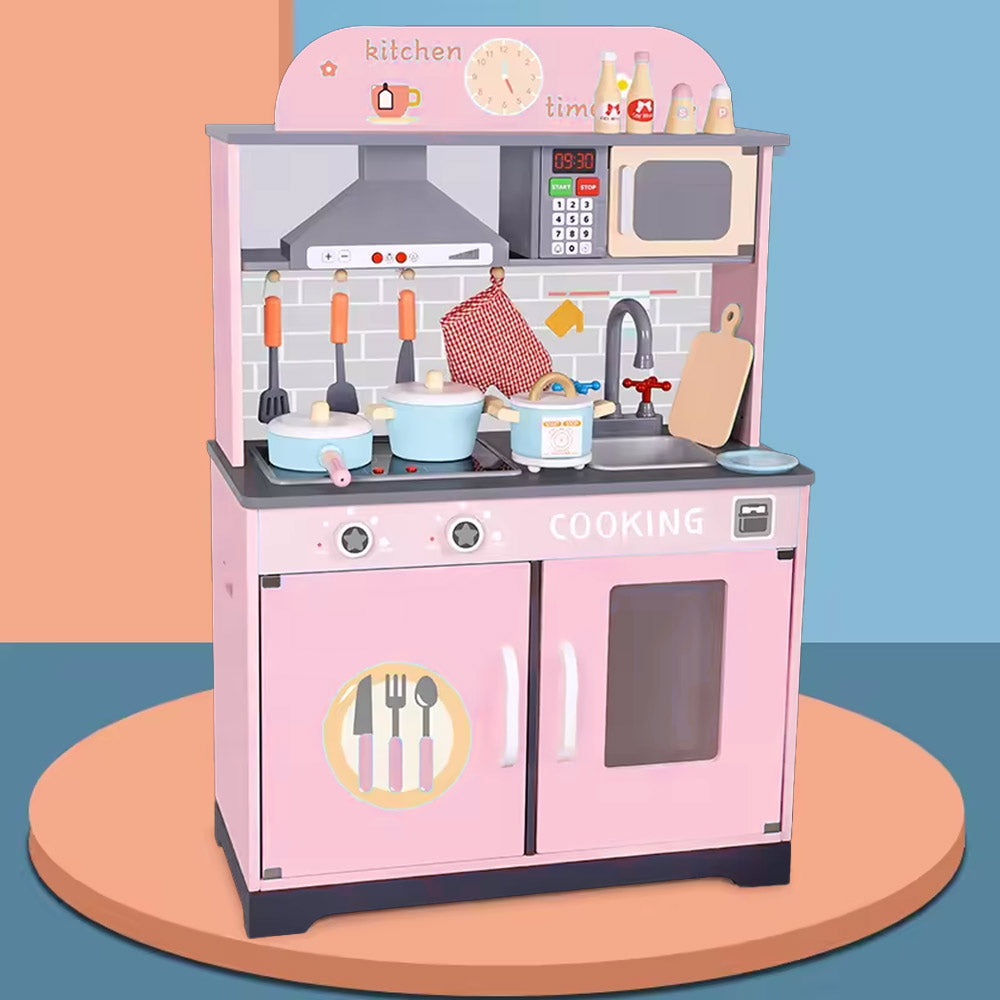 مجموعة ألعاب المطبخ الخشبية للأطفال – باللون الوردي مع صوت وضوء!