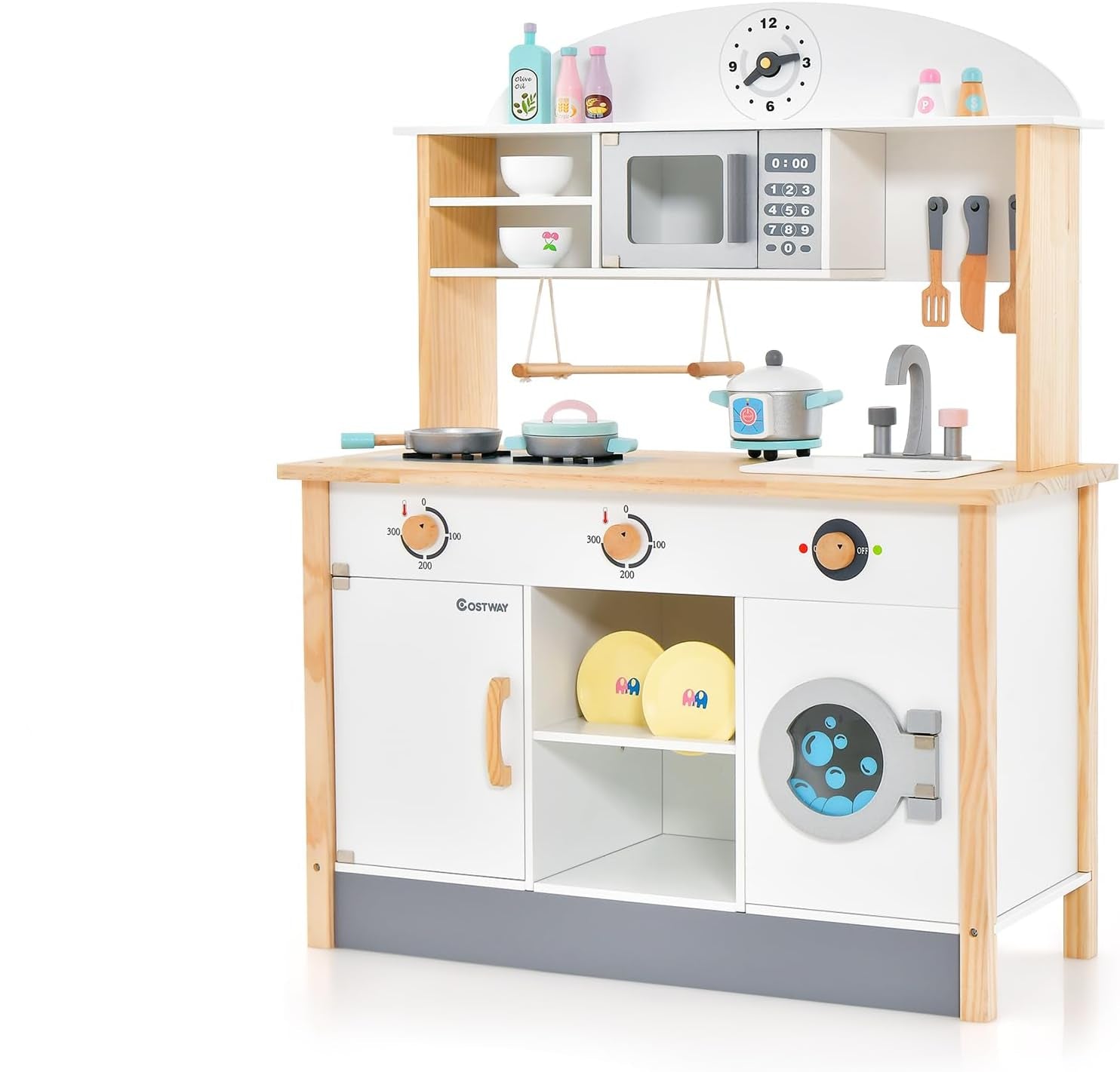 مطبخ خشبي للأطفال مع ملحقات مطبخ ألعاب مع ميكروويف وغسالة ومغسلة وموقد وأدوات طهي مطبخ خشبي للأطفال من سن 3 سنوات