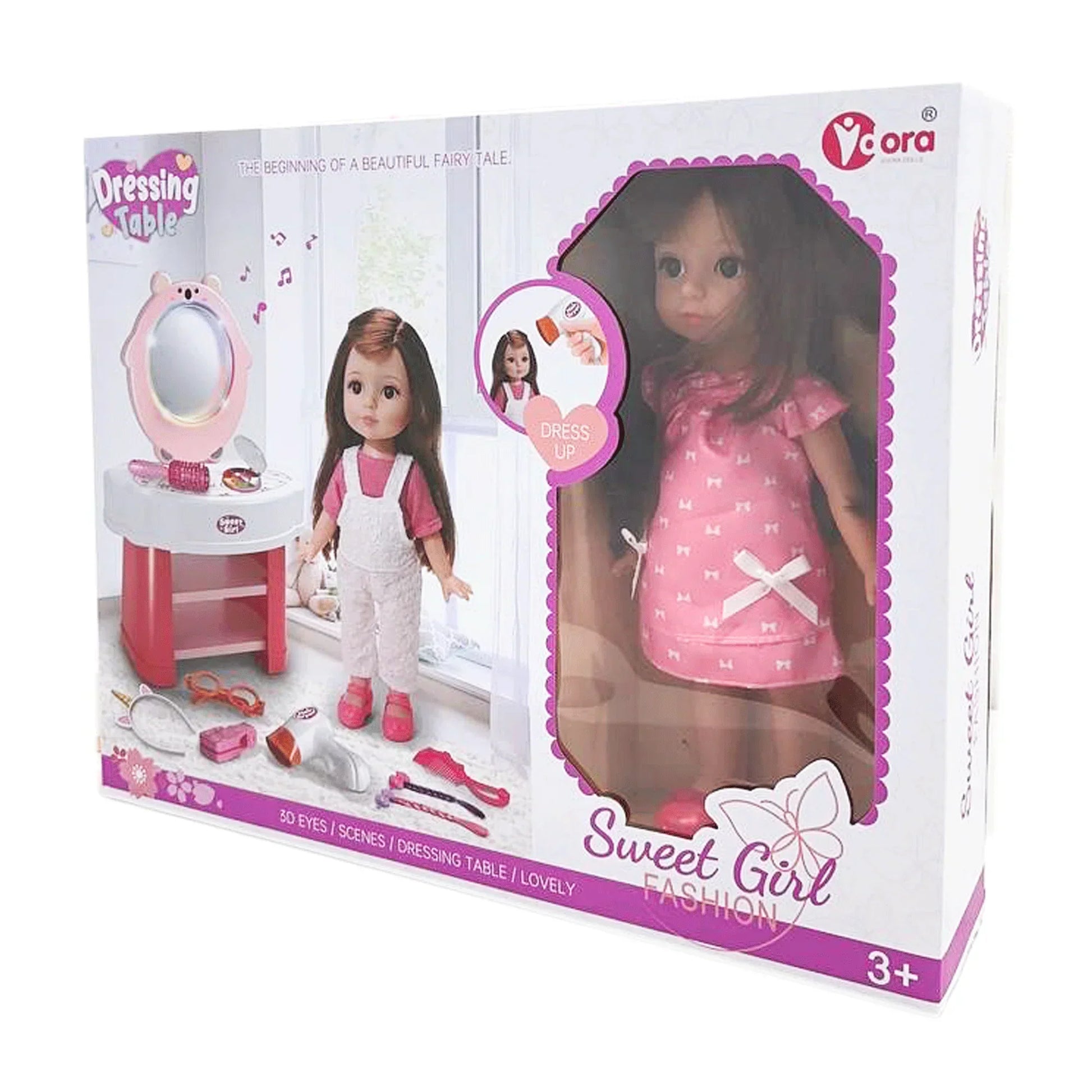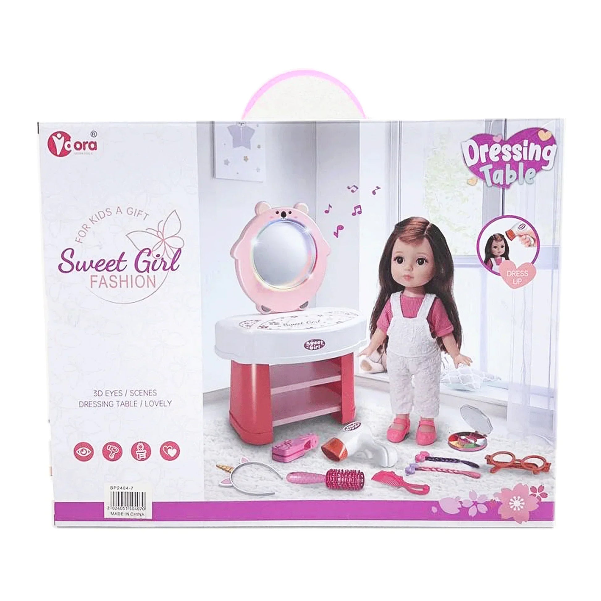 أزياء الفتاة الحلوة – دمية أنيقة مع طاولة تبديل ملابس
