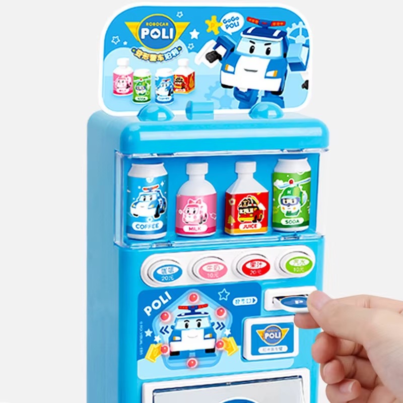 تأتي بتصميم يشبه آلة البيع الحقيقية، حيث يمكن للطفل إدخال العملات واختيار المشروب المفضل، مما يعزز الفهم المبكر لمفاهيم البيع والشراء.