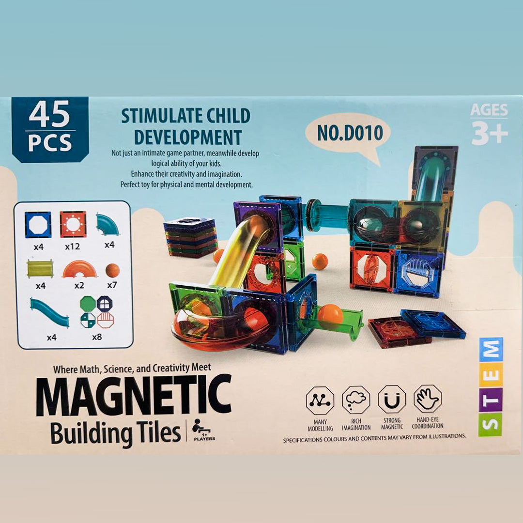 The magnetic building block set is a fun educational toy that helps develop your child's imagination and motor skills. Magnetic disc ball tube for kids STEM toys help kids gain geometry knowledge, color and shape recognition, design skills, and 3D spatial thinking at an early age. Our magnetic building blocks set comes in beautiful colors. Rounded edges and corners make it safe for children to play with. The stronger magnetic force makes it easier and faster to build strong structures that do not collapse easily. Rotatable parts add to the fun. Cartoon characters and alphabet-themed stickers add to the fun.