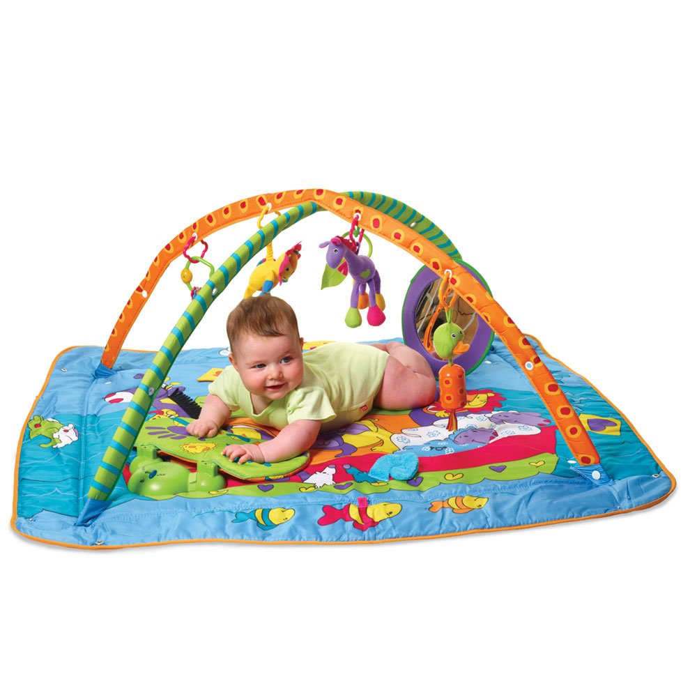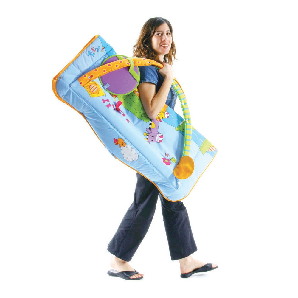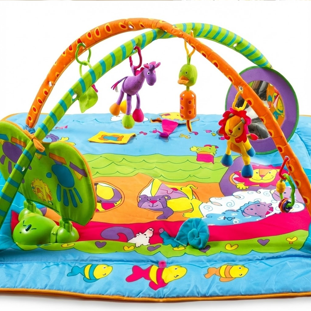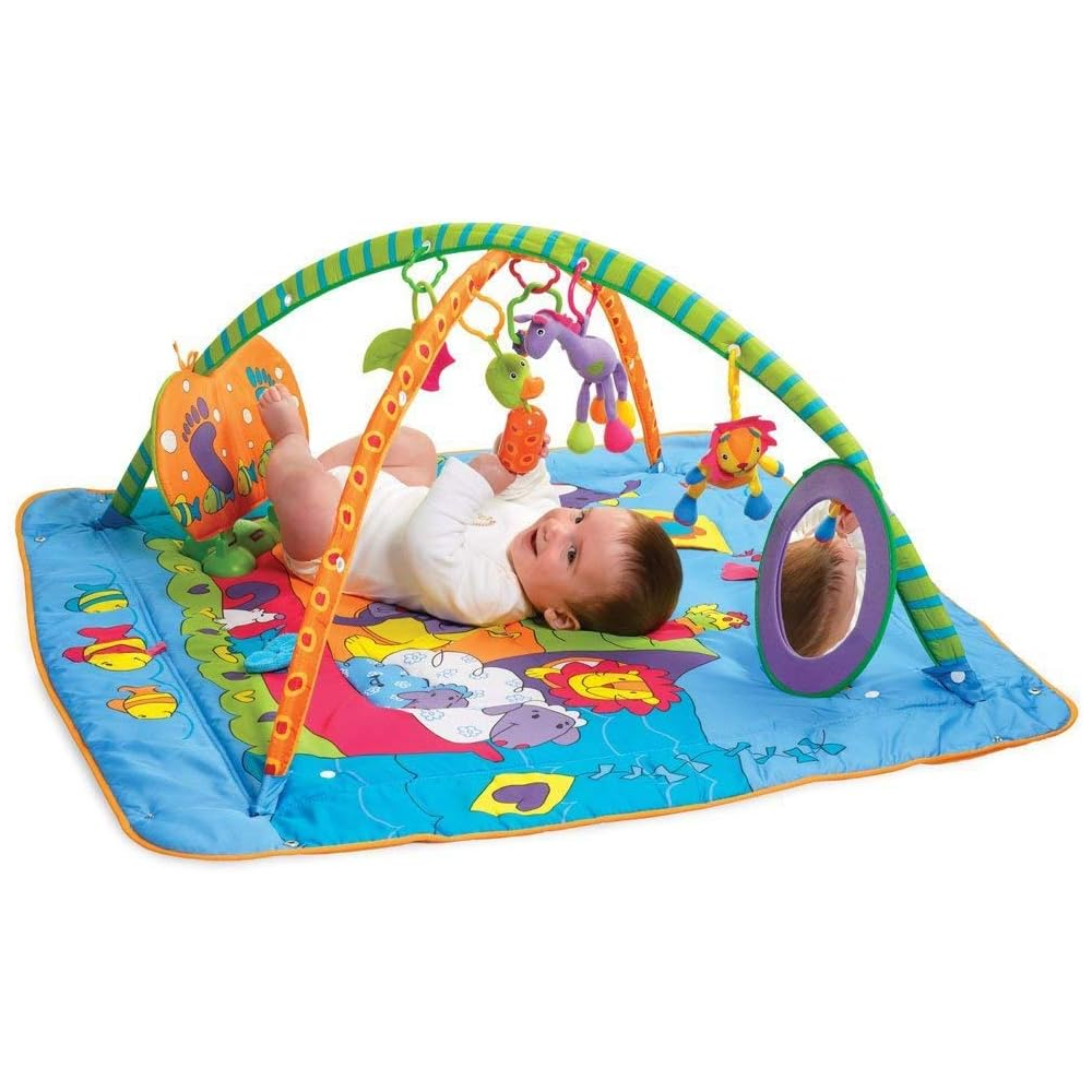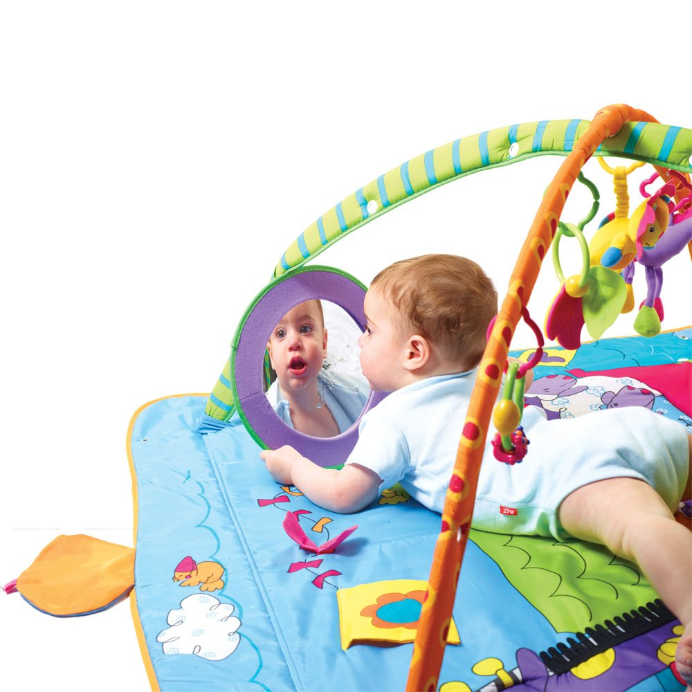 مصممة بألوان زاهية ورسومات محببة تجذب انتباه الطفل، مع أقواس تضم ألعابًا معلّقة، ومرايا آمنة، ولوحة لركل القدمين لتحفيز الحركة والنشاط.