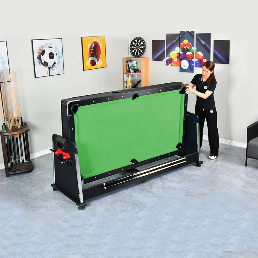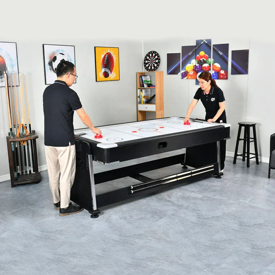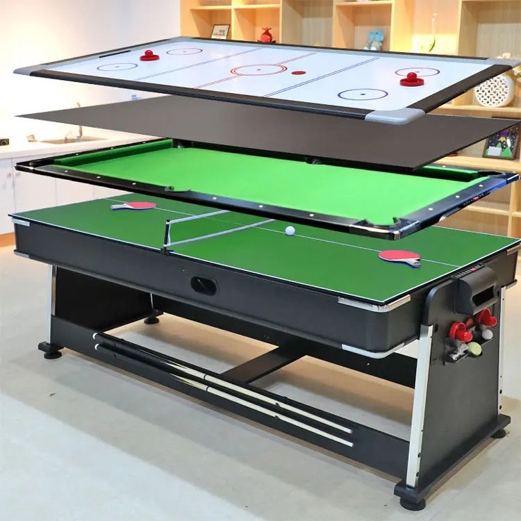 Includes all of the accessories needed to play the games you love such as pool cues and billiard balls, hockey pucks and pushers, and table tennis paddles and net.
