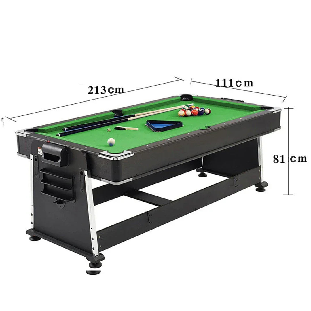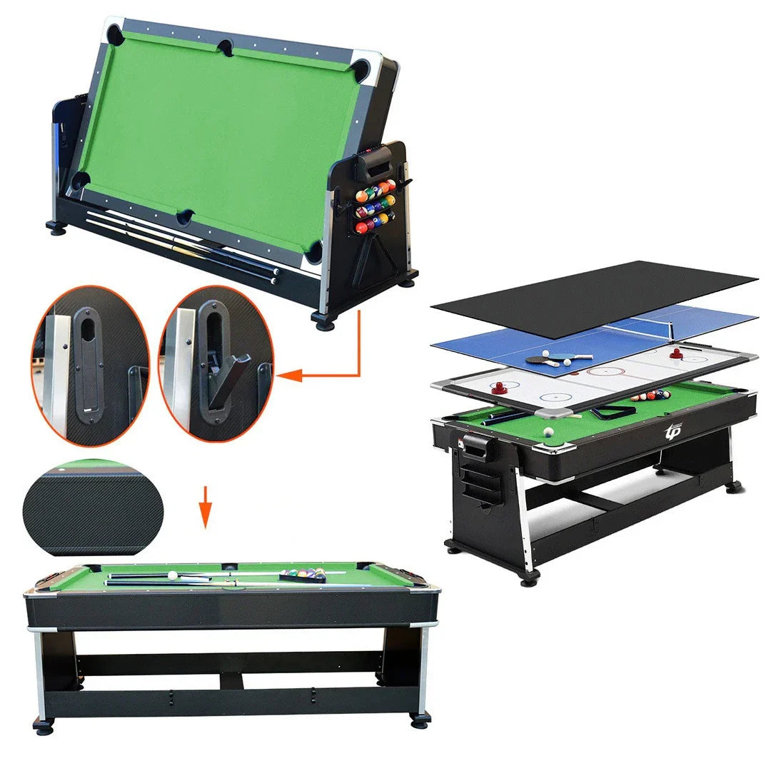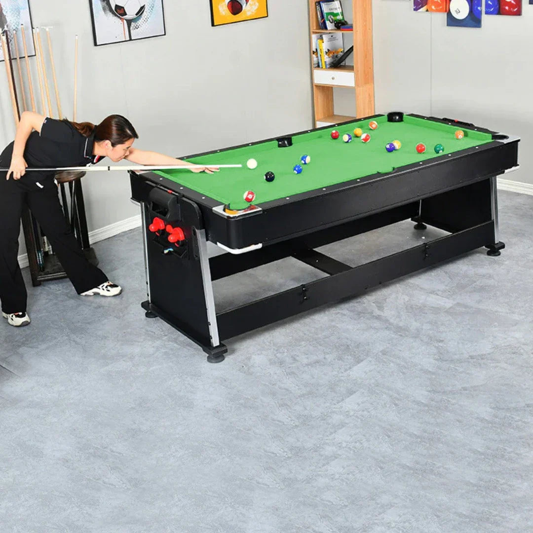 Includes all of the accessories needed to play the games you love such as pool cues and billiard balls, hockey pucks and pushers, and table tennis paddles and net.