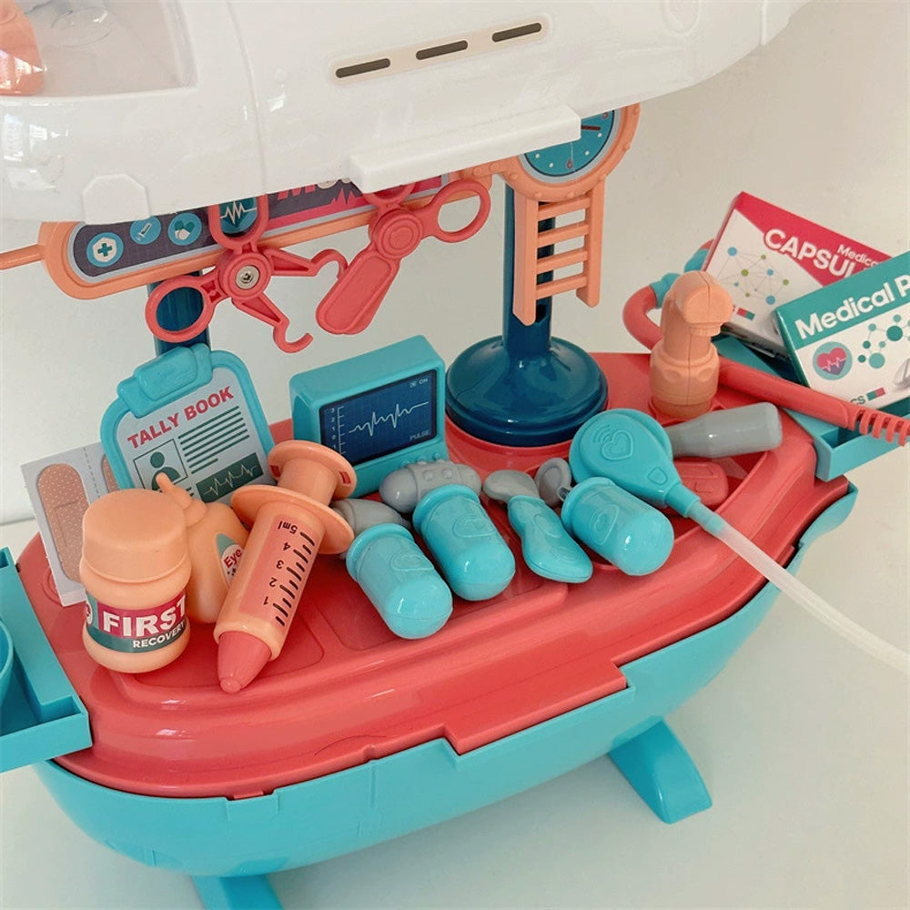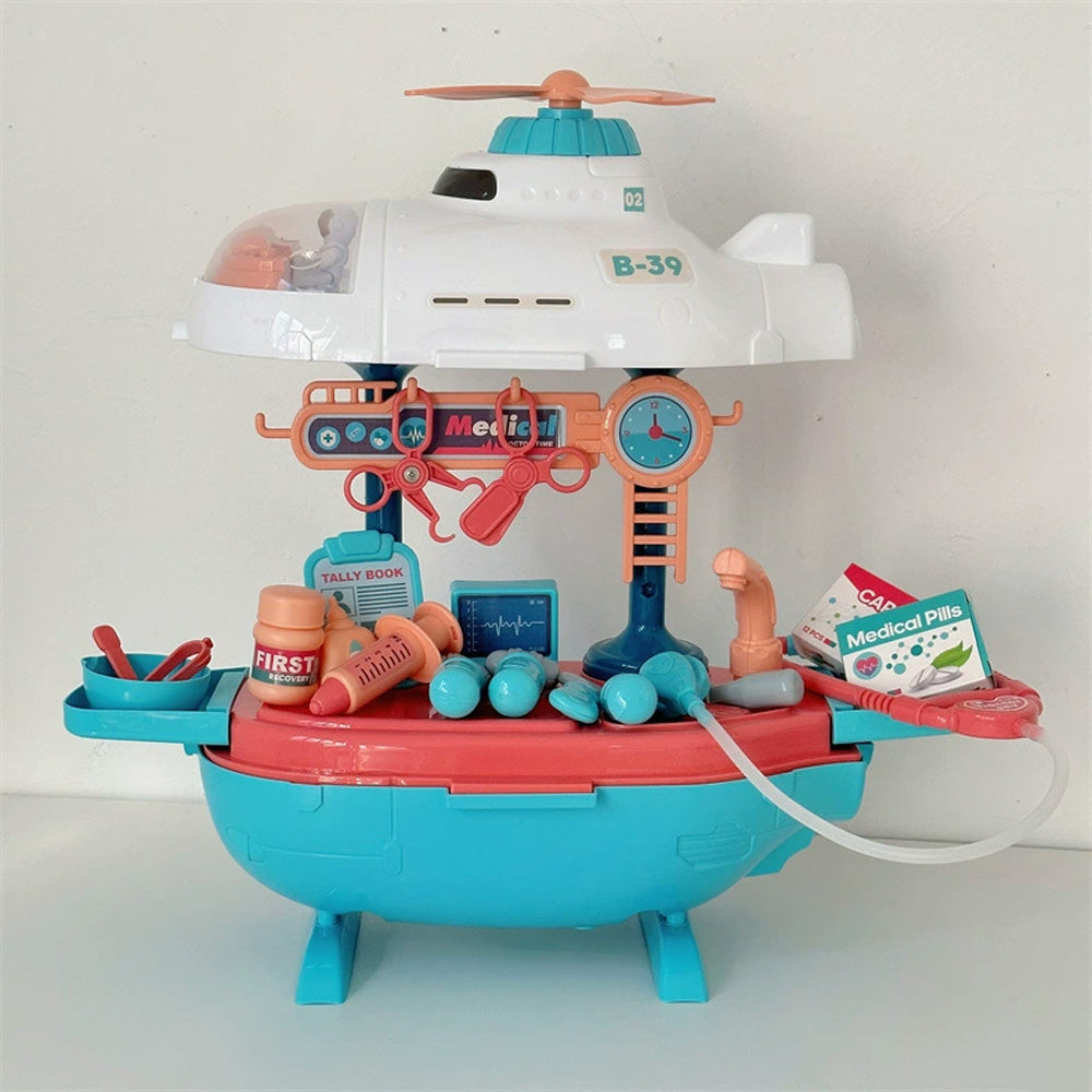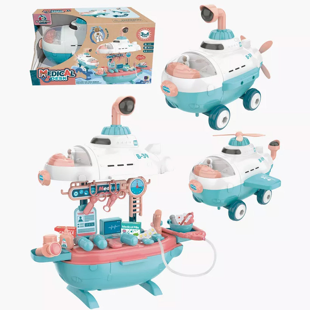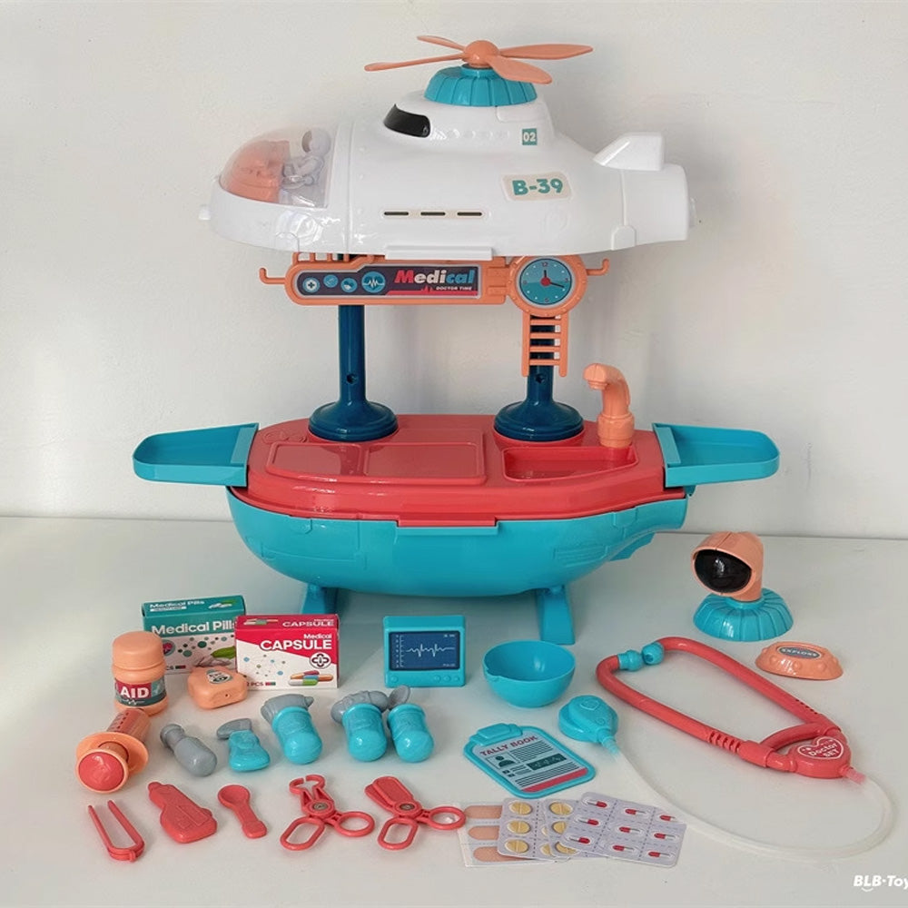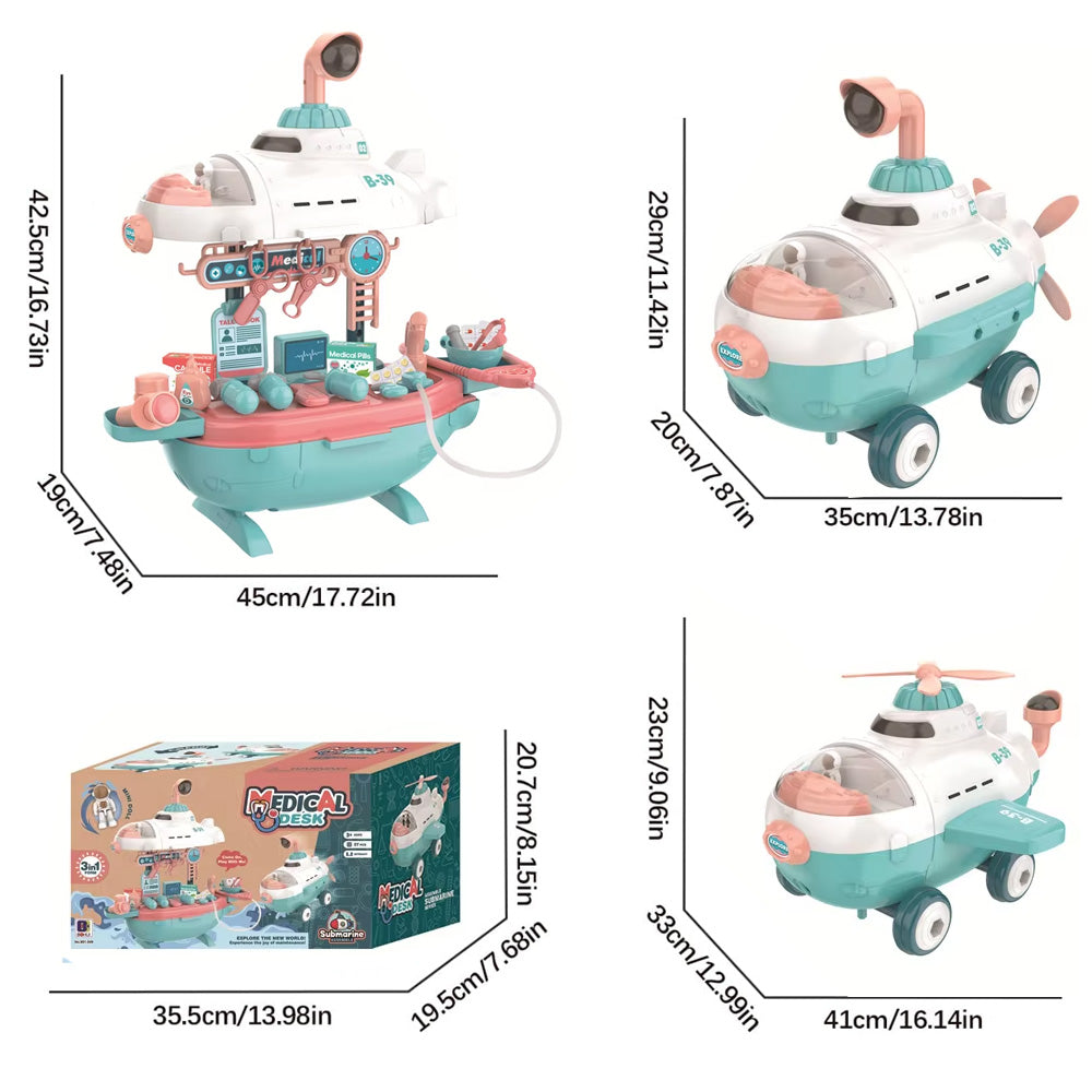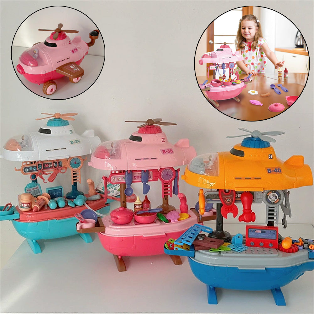 - مجموعة ألعاب منزلية للأطفال 3 في 1، طائرة، غواصة، طبيب، طاولة مطبخ للأولاد والبنات