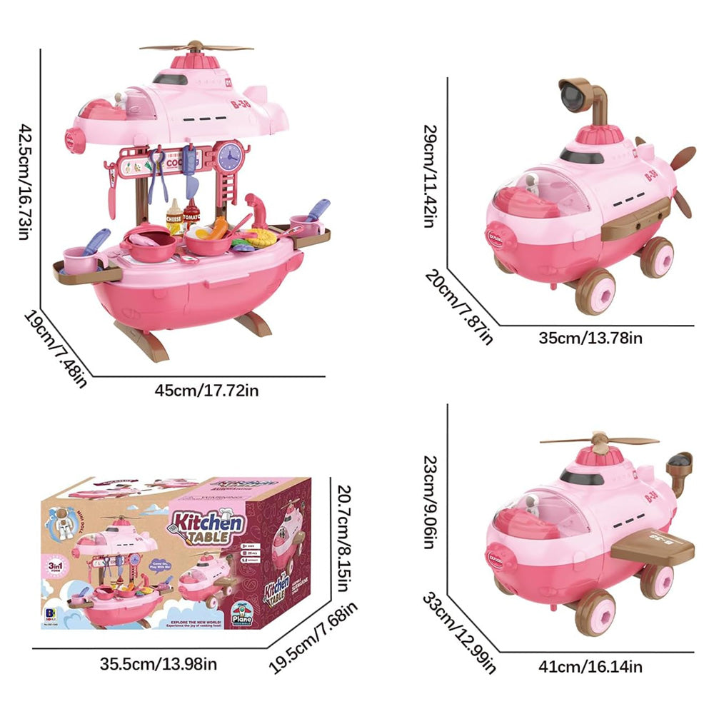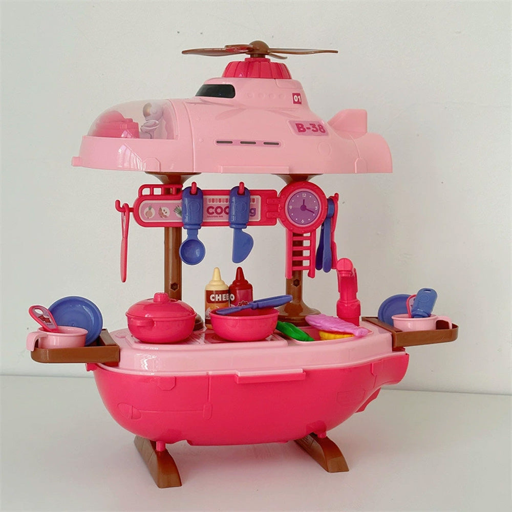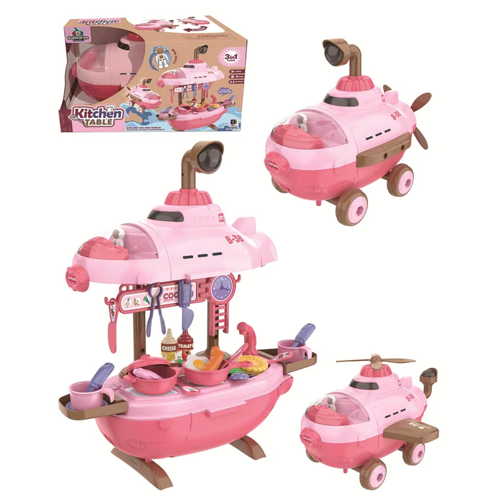 مجموعة ألعاب منزلية للأطفال 3 في 1، طائرة، غواصة، طبيب، طاولة مطبخ للأولاد والبنات