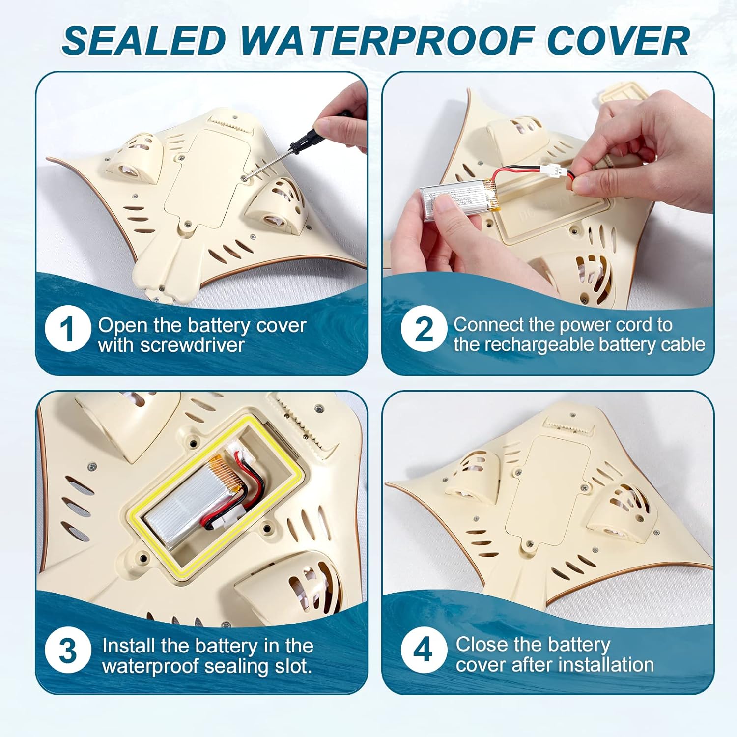 - 【ألعاب حمام السباحة الصيفية على شكل سمكة الراي اللساع】ألعاب التحكم عن بعد المائية الجديدة، جسم مسطح لأسماك الراي اللساع، تسبح مثل سمكة طائرة في البحر. استعادة تصميم مظهر سمكة الراي، وضعية السباحة الخفيفة، سوف تبرز في ألعاب المياه الصيفية.