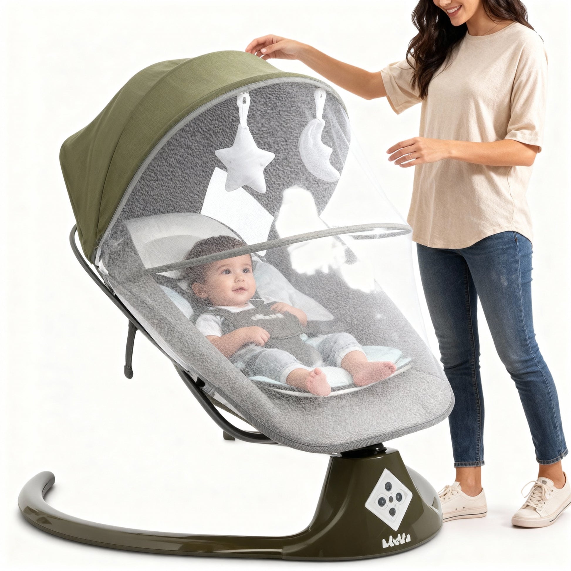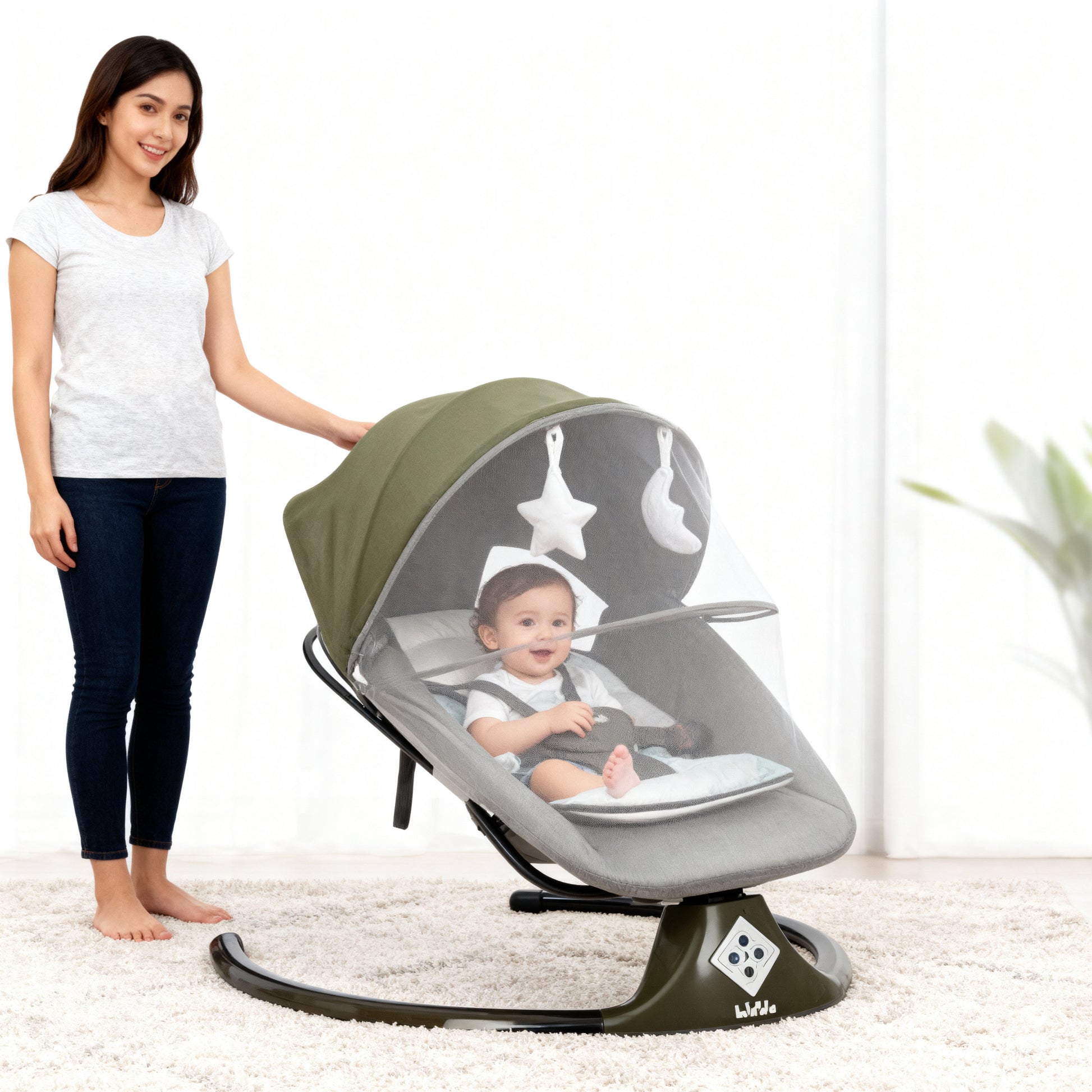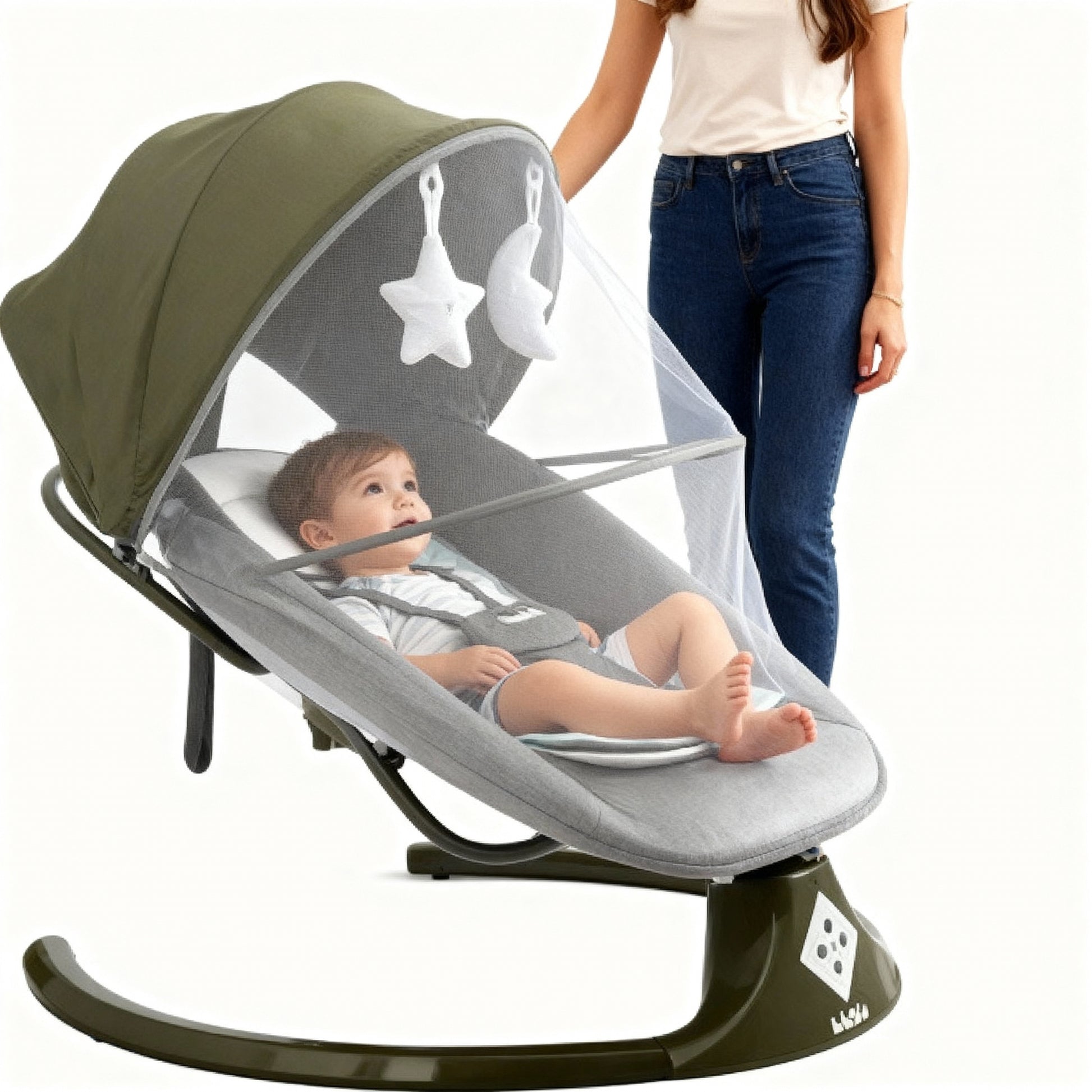 كرسي هزاز ذكي للأطفال مع مظلة وشبكة واقية