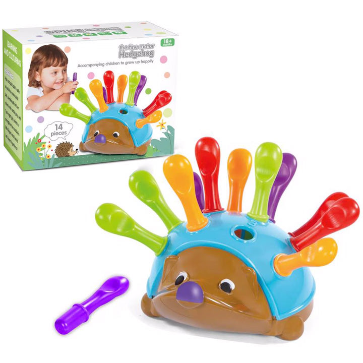 ألعاب محرك دقيقة للأطفال: قم بتطوير المهارات الحركية الدقيقة باستخدام قطع سميكة على شكل وتد تناسب الجزء الخلفي من هذا القنفذ الودود. استخدم أيضًا Spike كتمارين العلاج المهني
