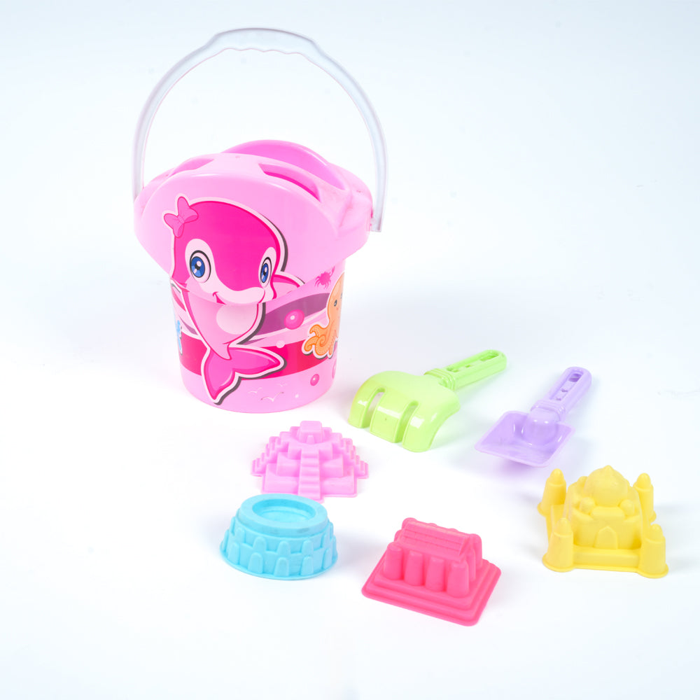 7قطع متنوعة تشمل دلو، مجرفة، قالب، وملحقات أخرى.