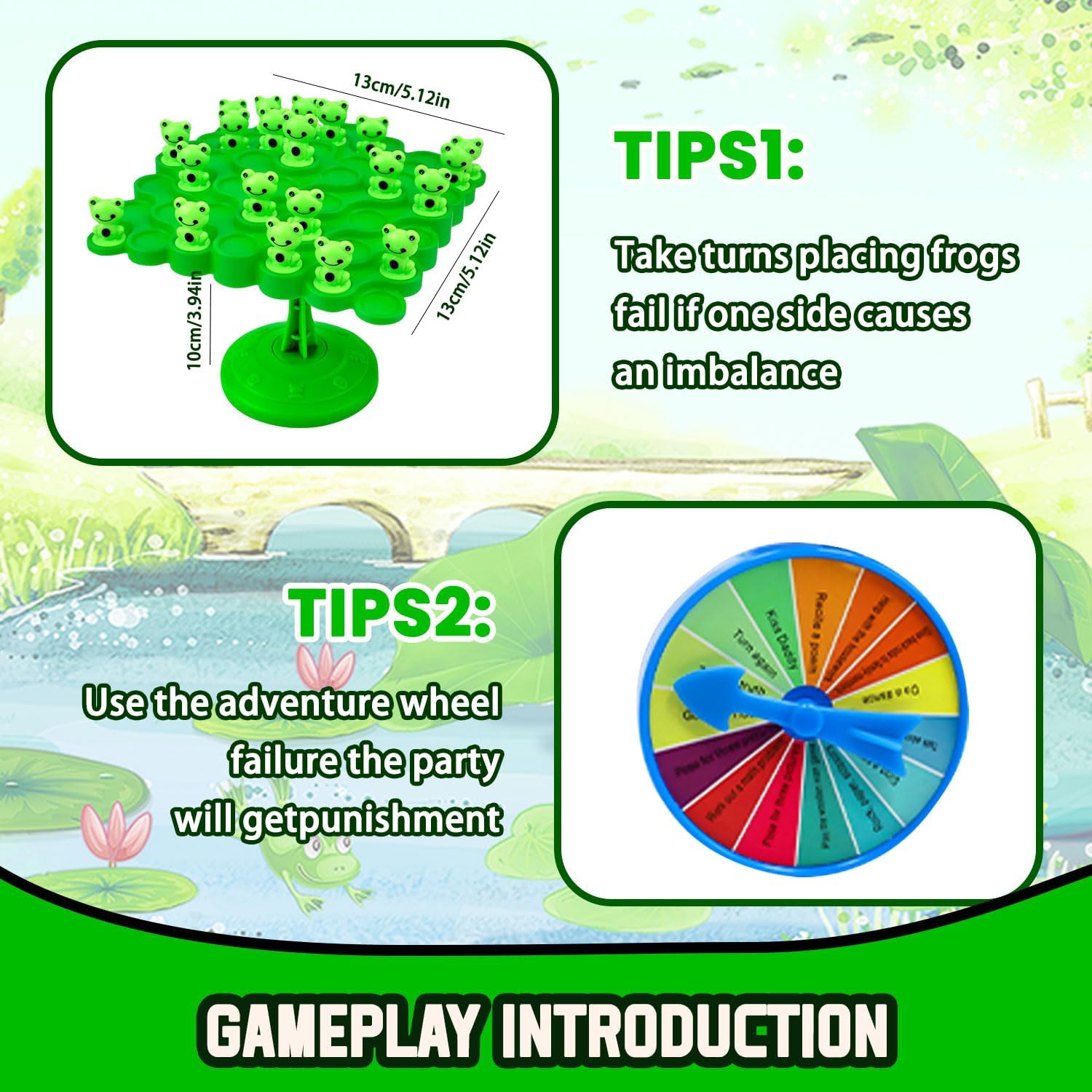 - سهلة اللعب: يمكن للاعبين اختيار كميات مختلفة وفقًا لأفكارهم الخاصة ووضعها على مساحات فارغة أخرى على لوحة التوازن للحفاظ على توازن شجرة توازن الضفدع، أو رمي النرد ووضع العدد المقابل من الضفادع وفقًا لعدد النرد لكل منها، حتى المبتدئين يمكنهم إتقان اللعبة بسهولة في دقيقة واحدة.