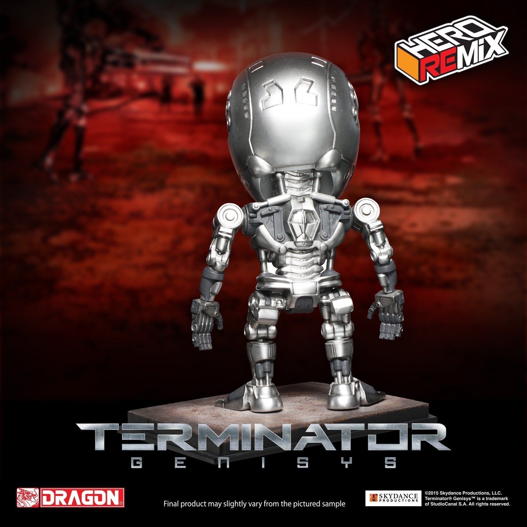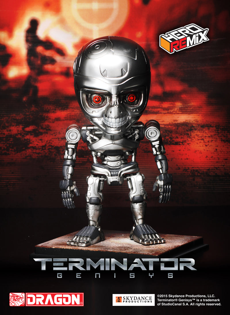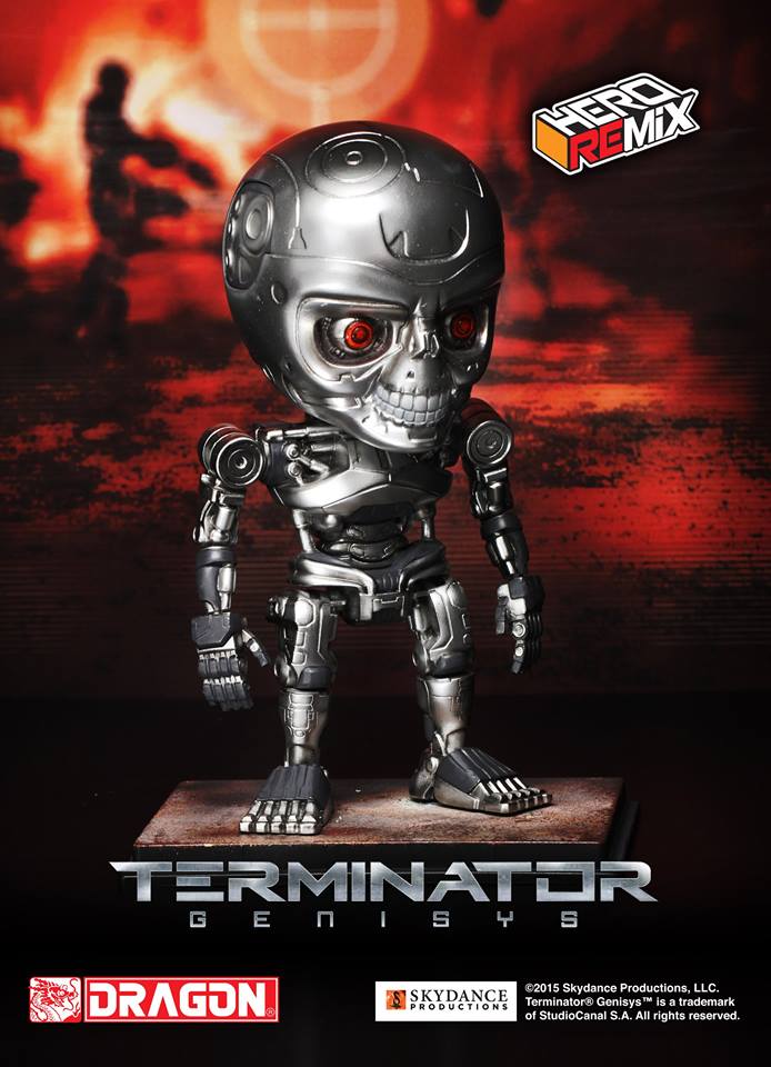 إصدار آخر من Terminator Genisys قادم من Dragon Models هو SD T-800 Endoskeleton Hero Remix 6″ Scale Action Figure . يتميز الشكل بـ 11 نقطة مفصلية وطبقة نهائية شبه كروم وقاعدة الشكل. سعره 388 دولارًا هونج كونجًا (حوالي 50 دولارًا أمريكيًا). الطلبات المسبقة متاحة الآن في UML Group ، على الرغم من عدم تحديد تاريخ الإصدار.