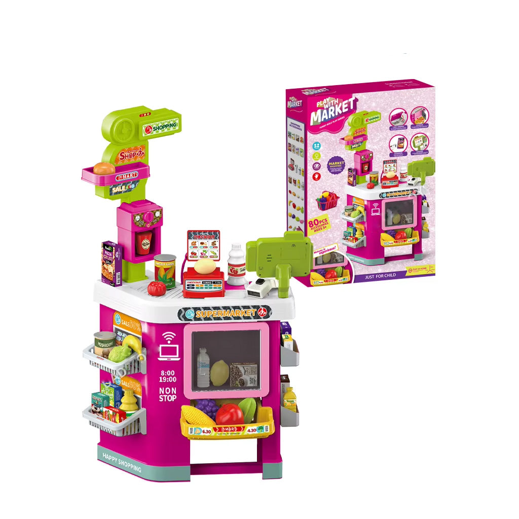 مجموعة ألعاب السوبر ماركت ستمنحك شعورًا حقيقيًا بالبائع أو المشتري! تتكون المجموعة من 67 عنصرًا، يمكنك من خلالها تجميع سوبر ماركت لعبة بسهولة، مزود برفوف جانبية وآلة قهوة. يحتوي السوبر ماركت على ماكينة تسجيل نقدي وماسح ضوئي، بإضاءة خلفية وأصوات مناسبة. ستتيح لك نماذج العملات المعدنية والأوراق النقدية الدفع عند الدفع. تُحاكي المقاييس الإلكترونية المستخدمة عادةً لوزن الخضراوات والفواكه. كما تتيح لك مجموعة المنتجات الغذائية والملحقات الأخرى وضع كل ما ترغب به في السلة، على سبيل المثال، الخضراوات والفواكه وزجاجة الحليب أو علبة الذرة.