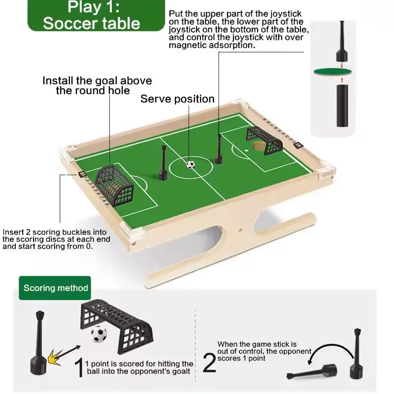 - مجموعة ألعاب طاولة صغيرة 2 في 1 خشبية مغناطيسية لكرة القدم لودو