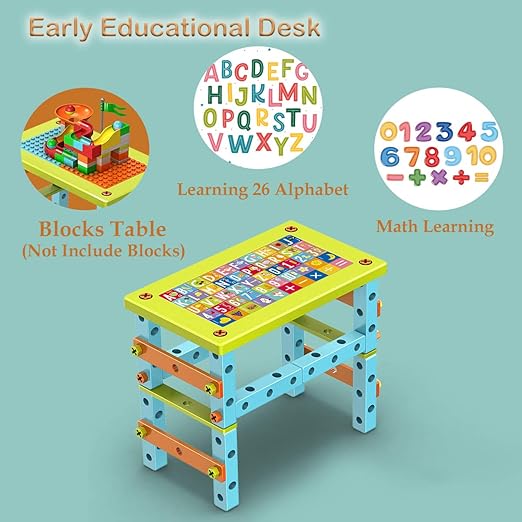 تأتي هذه الطاولة المتعددة الوظائف مع مجموعة مكعبات STEM تعليمية قابلة للفك والتركيب، مما يوفّر تجربة ترفيهية وتعليمية متكاملة.
