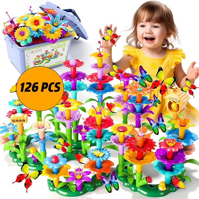 - مكعبات ربط الزهور للفتيات 126 قطعة