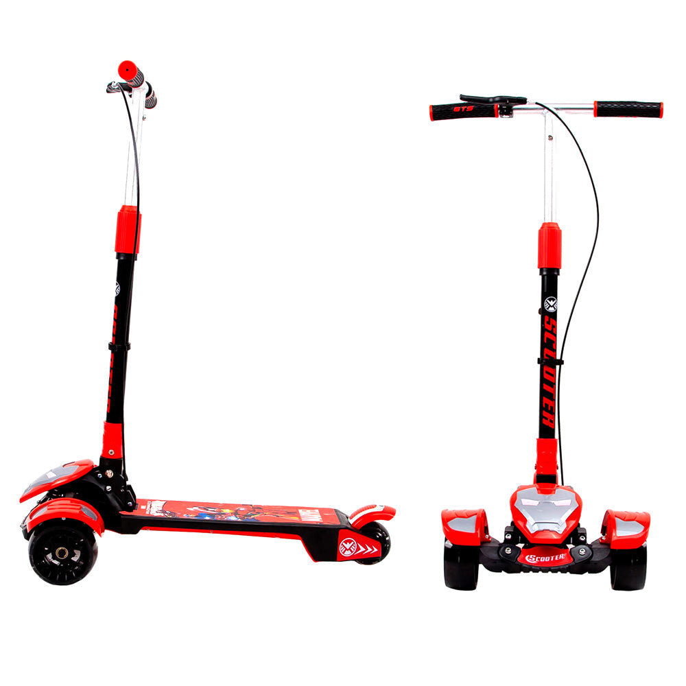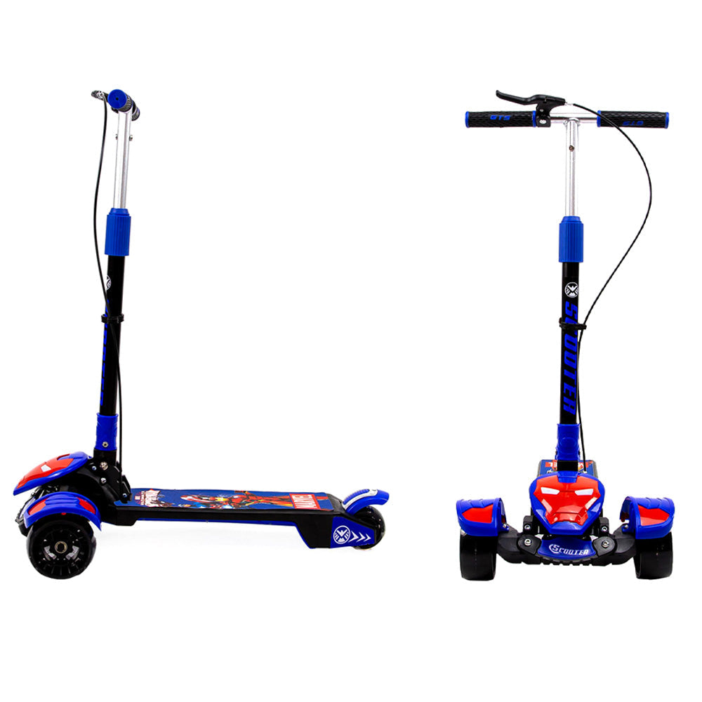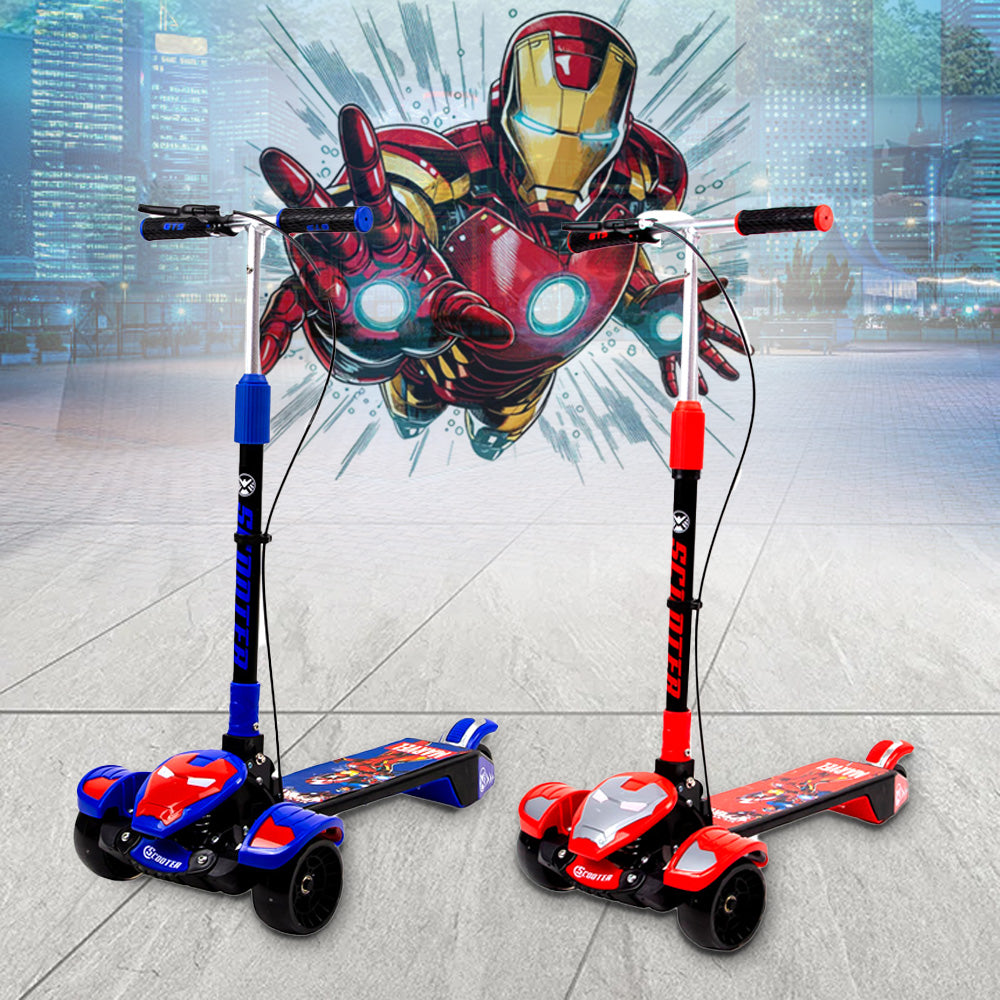 "سكوتر قابل للطي للأطفال والمراهقين ، سكوتر الرجل الحديدي بثلاث عجلات سهل الركوب وتصميم بسيط وخفيف الوزن يوفر تحكما أفضل أثناء الدوران وتعليم الصغار التوازن مع مقبض رياضي من ثلاثة مستويات للأعمار من 2 إلى 11 عاما "" ، تتميز دعامة التوجيه بامتصاص الصدمات المدمج ، والاستعارة من مبدأ التعليق للسيارات المتطورة ، والتوجيه المتكامل لامتصاص الصدمات ، وتوزع الدعامة الدعم الجانبي بشكل مستقل ، والتعليق على شكل ثمانية لقبضة أكثر ثباتا لمنع التدحرج ""دوران سريع تمارين التوازن والانزلاق الممتعة ، قضيب التشغيل مجهز بعمود استشعار الجاذبية ، بالاعتماد على قوة جسم الطفل للإمالة بشكل طبيعي ، ولن يتضرر الدوران بحرية تصميم قابل للطي ، باستخدام أزرار قفل مزدوجة ، تعميق الحفرة ، بحيث يكون الاتصال بين القضيب والدواسة قويا جدا ، لتجنب الاهتزاز "" عجلات مختلفة ، طبقة مقواة من البولي يوريثين المضادة للانزلاق ، عجلة تحميل فلاش كاملة لعجلة تحميل الصلب المقوى طريقة الفرامل: فرامل آمنة مزدوجة مقبض سبائك الألومنيوم،"