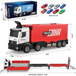 • ألعاب شاحنة النقل 3 في 1: تتميز شاحنة النقل هذه بتصميم قابل للطي، وتتميز بسيارة حاوية بمسار المنجنيق وحجرة تخزين لـ 8 قطع من سيارات السباق الملونة المصبوبة، تأتي مع أضواء وامضة وتصدر أصوات بوق مرور مختلفة، مما يوفر تجربة نقل كاملة لعشاق السيارات الصغار. تتضمن أيضًا لافتات المرور وعلامات السباق لأي تحدي سباق.