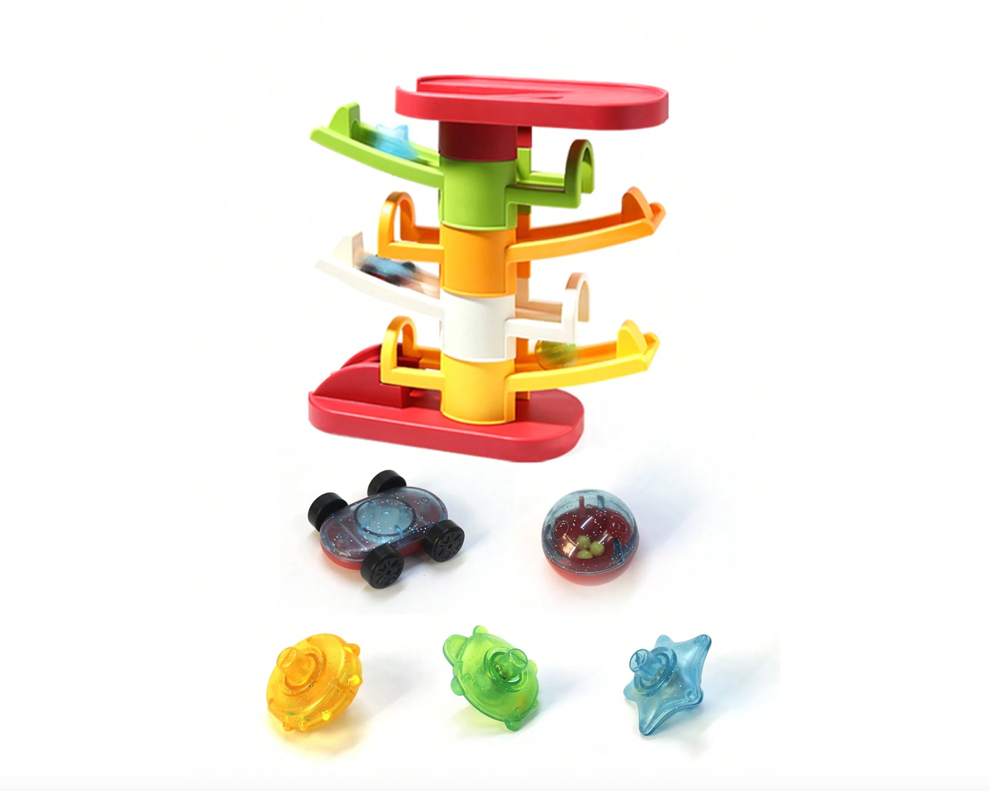 دع طفلك يستمتع بلحظات من الإثارة والمرح مع لعبة التزحلق بمسار دوراني المصممة لتوفير تجربة لعب ديناميكية ومسلية! تبدأ السيارات أو الكرات بالانطلاق من الأعلى وتنزلق عبر المسارات الحلزونية بسرعة وحيوية، مما يُحفّز خيال الطفل ويطوّر مهاراته الحركية والبصرية.