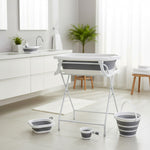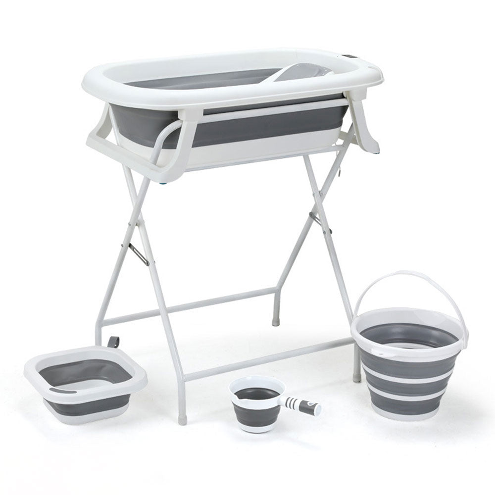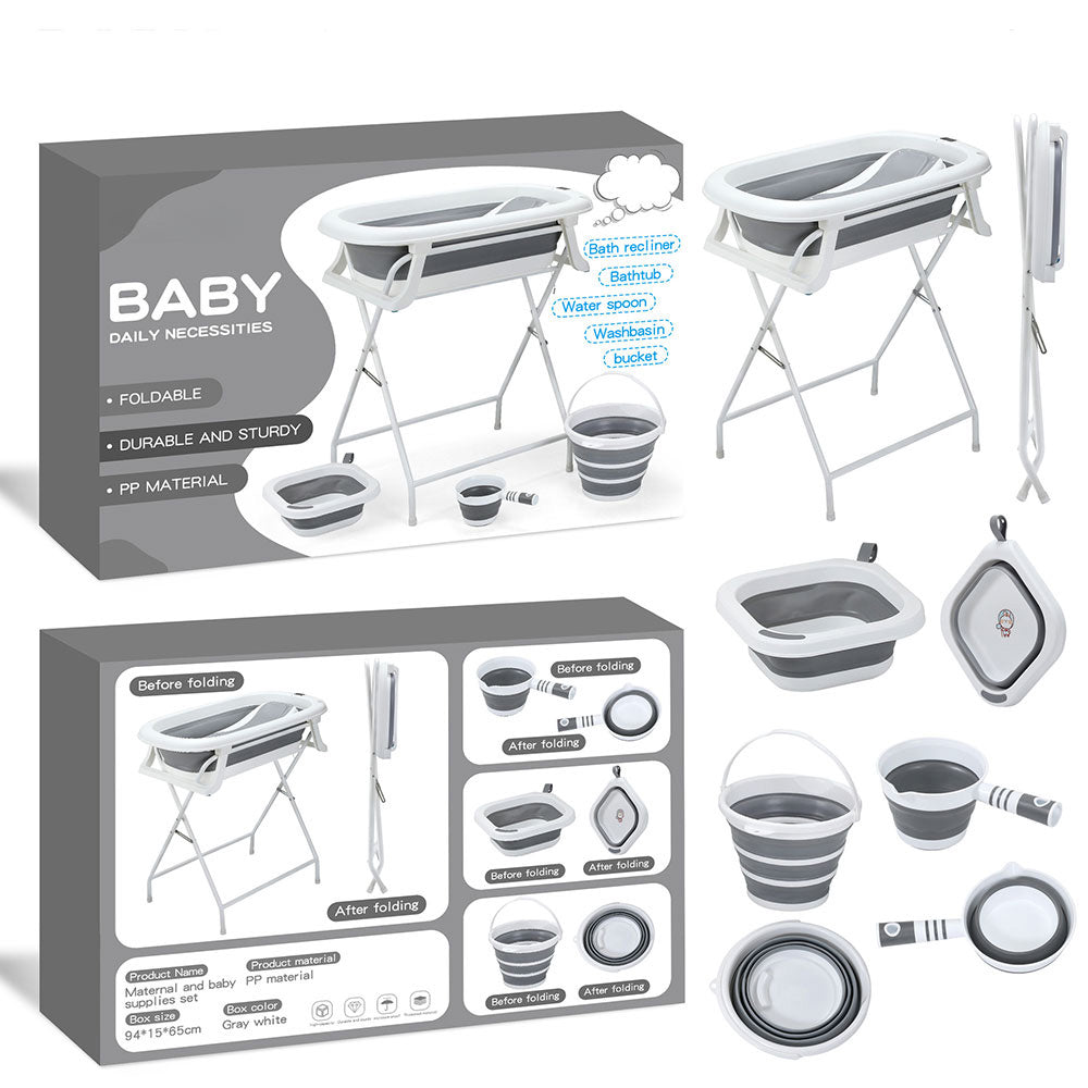 اجعلي وقت الاستحمام أسهل وأكثر متعة مع طقم حمام الأطفال القابل للطي هذا. مصمم لتوفير الراحة والسهولة، ويتضمن حوض استحمام متين مع مسند مائل، ومغرفة ماء، وحوض غسيل، ودلو - جميعها مصنوعة من مادة البولي بروبيلين المتينة وعالية الجودة. تصميمه القابل للطي يوفر المساحة ويجعل التخزين أو السفر في غاية السهولة. كما يوفر شكله المريح الأمان والراحة لطفلك أثناء كل استحمام.