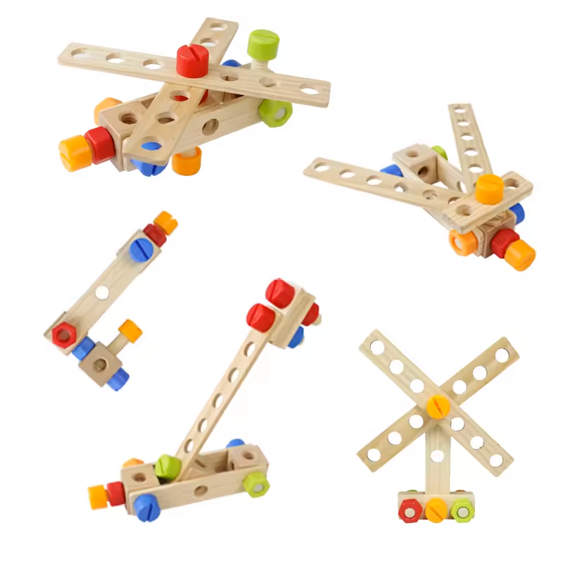 - ألعاب تجميع البراغي التعليمية الخشبية